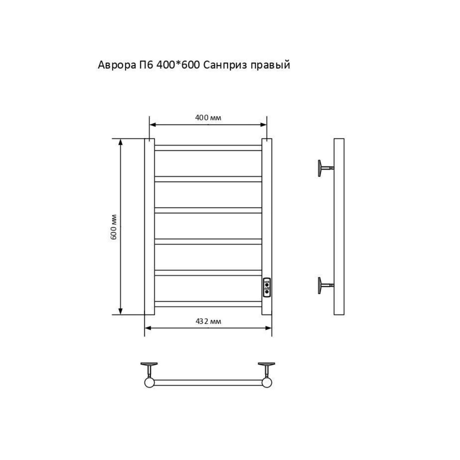 Полотенцесушитель электрический "САНПРИЗ" Аврора П6, 400x600 мм, правый, хром