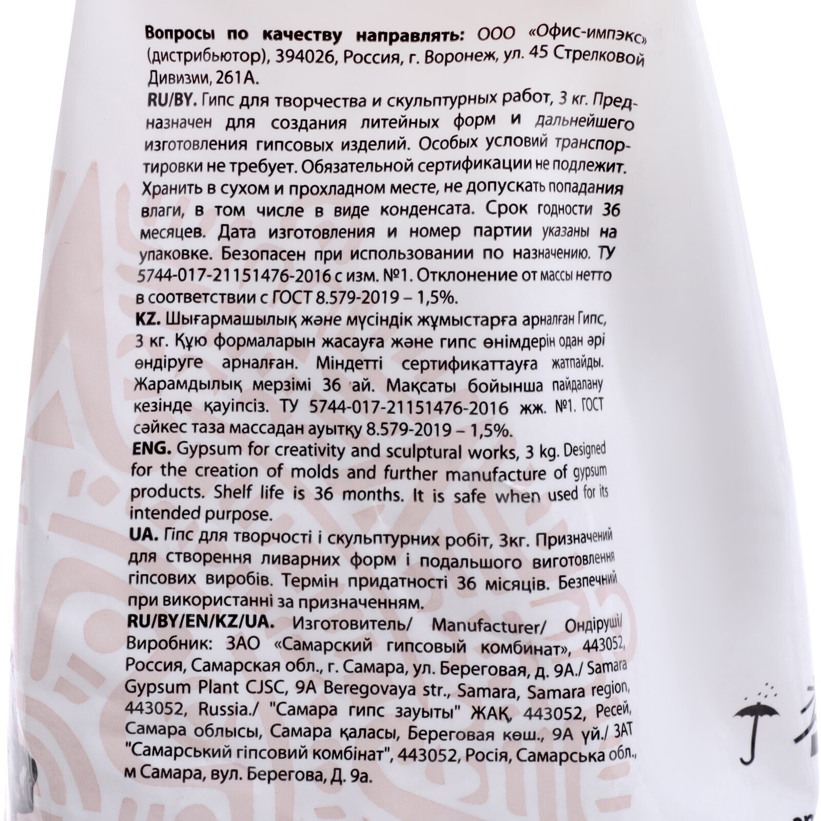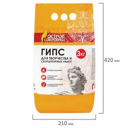 Гипс скульптурный для творчества, 3 кг, прочность Г-16, пакет, ОСТРОВ СОКРОВИЩ