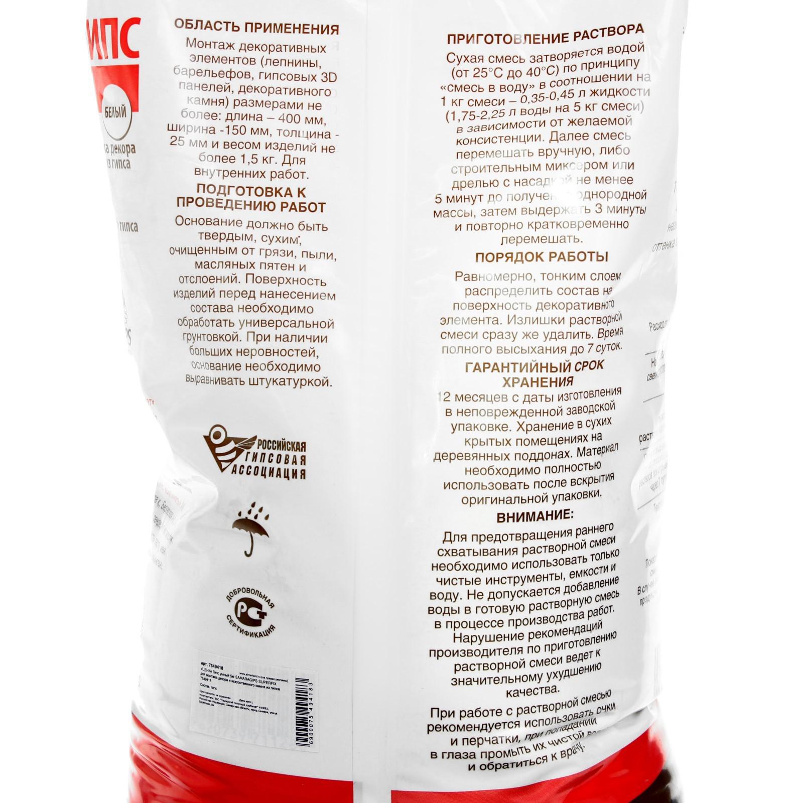 УЦЕНКА Умный гипс SAMARAGIPS SUPERFIX, 5 кг, для монтажа декора и искусственного камня из гипса (истёк срок годности)