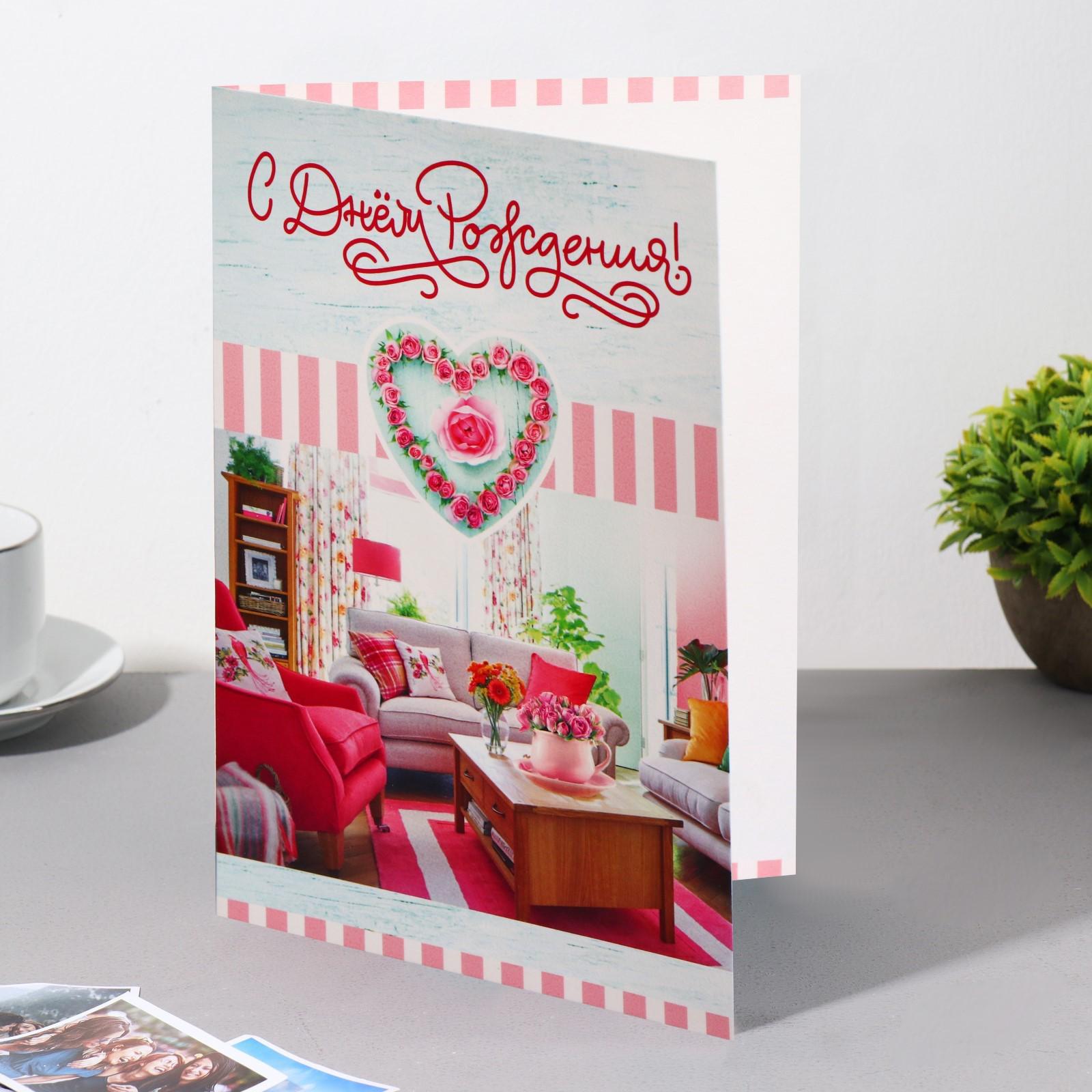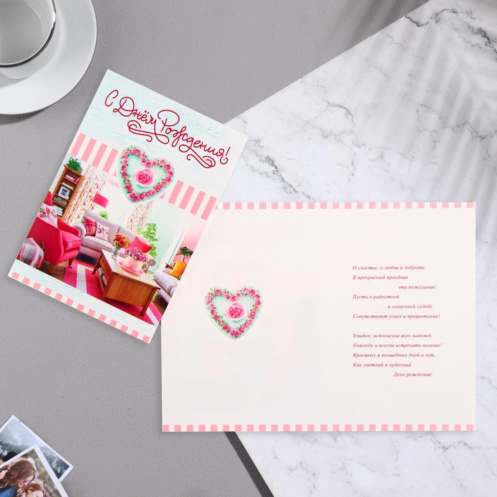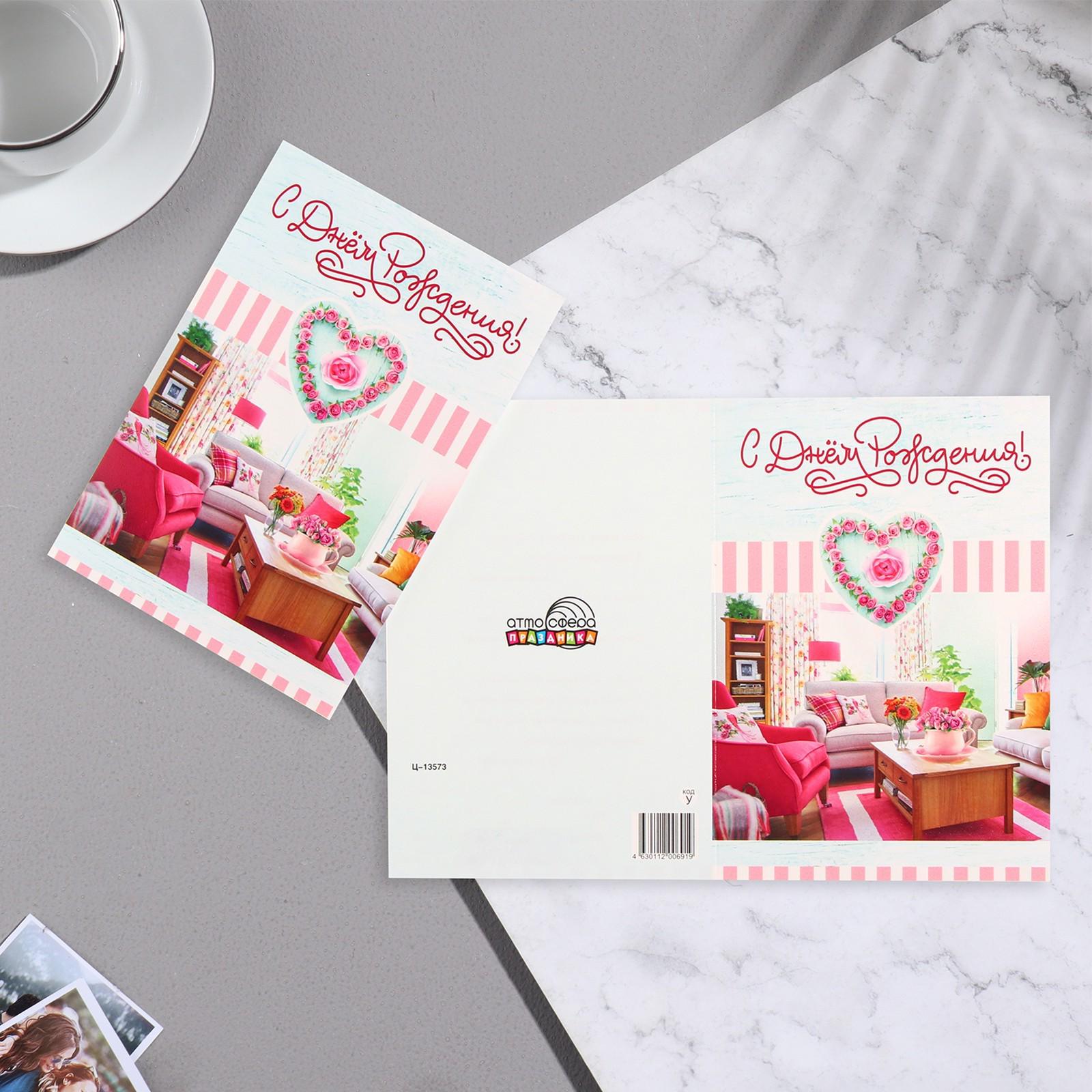 Открытка "С Днем Рождения!" сердце, 13 х 18 см