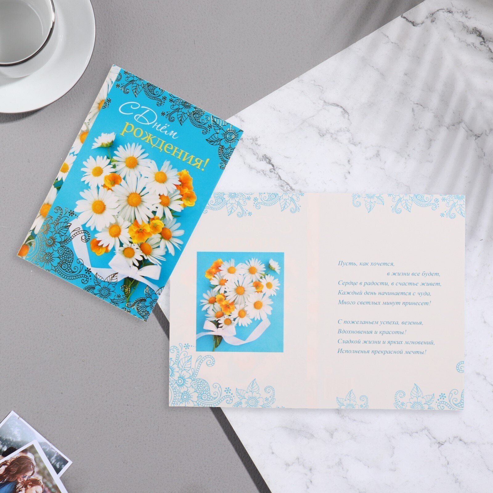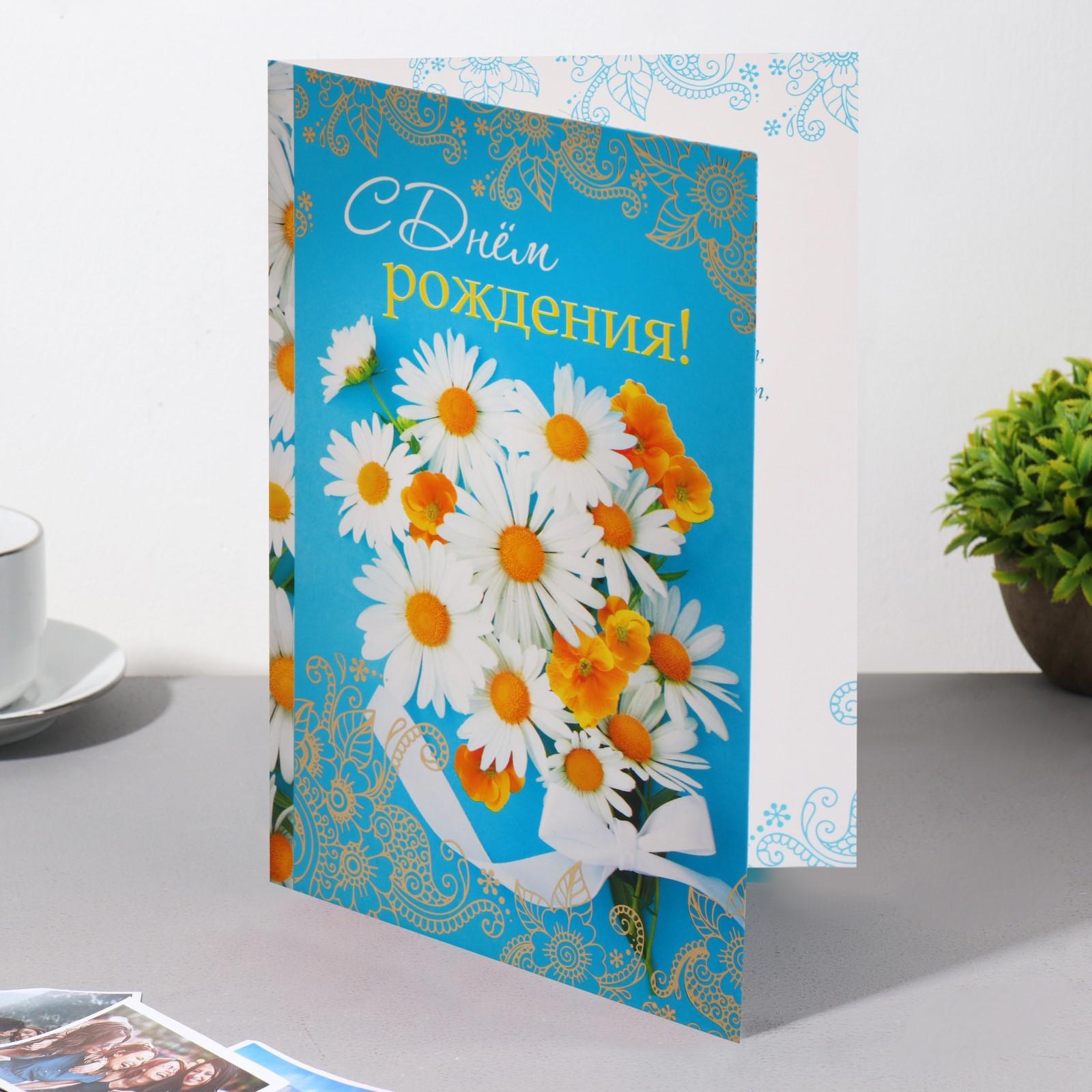 Открытка "С Днем Рождения!" ромашки, 20 х 28 см
