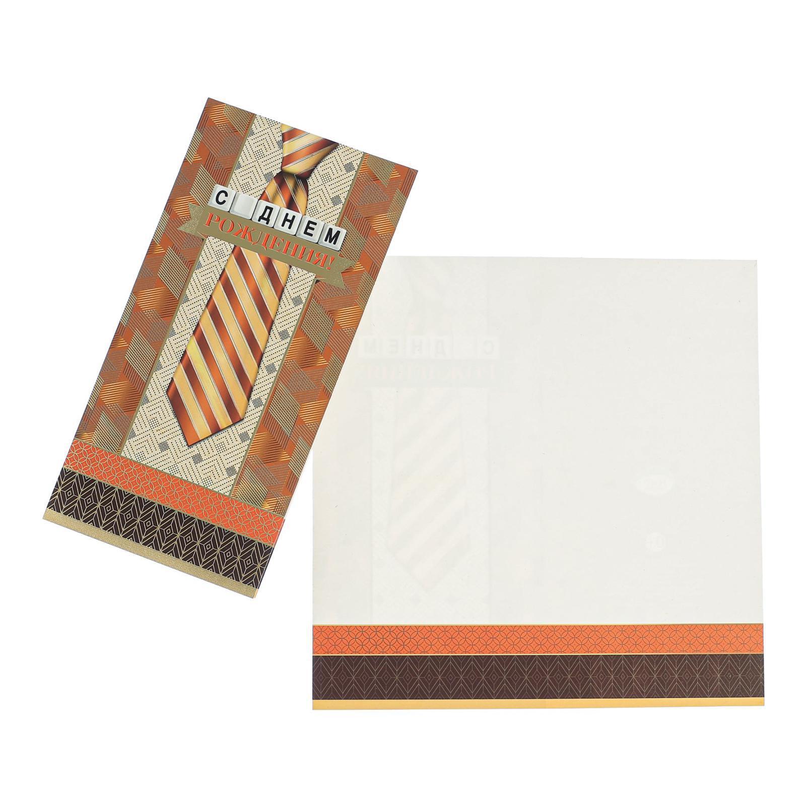 Открытка "С Днем Рождения!" фольга, конгрев, галстук коричневый