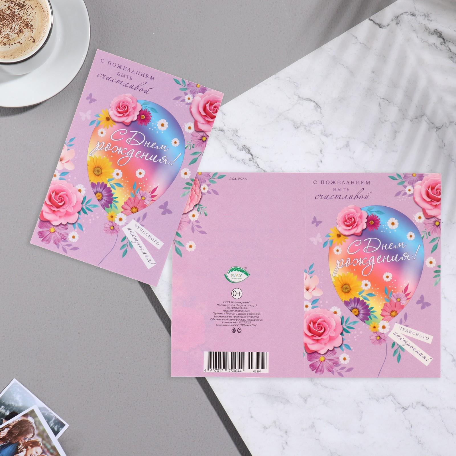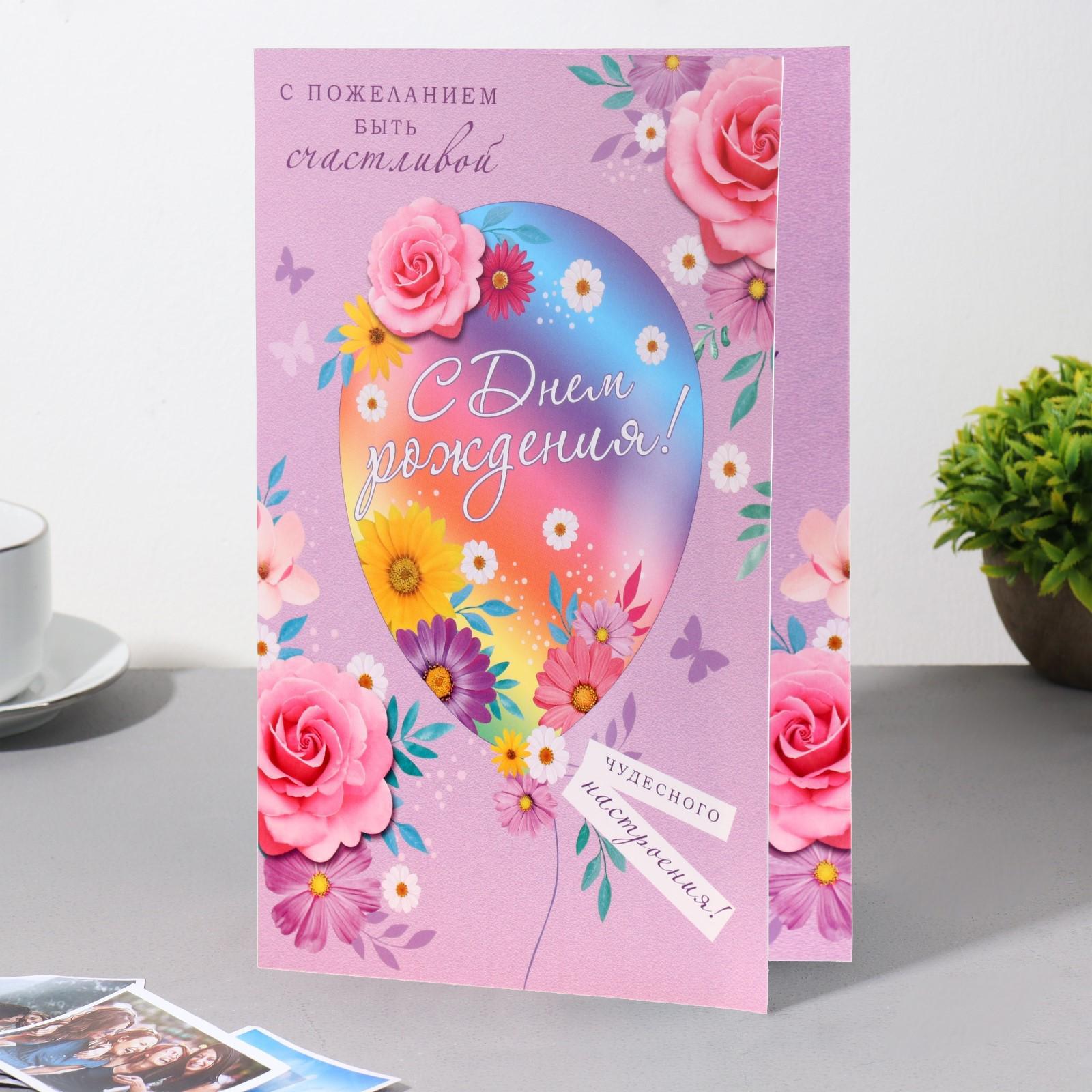 Открытка "С Днём Рождения!" цветной шар, 12,5х19 см