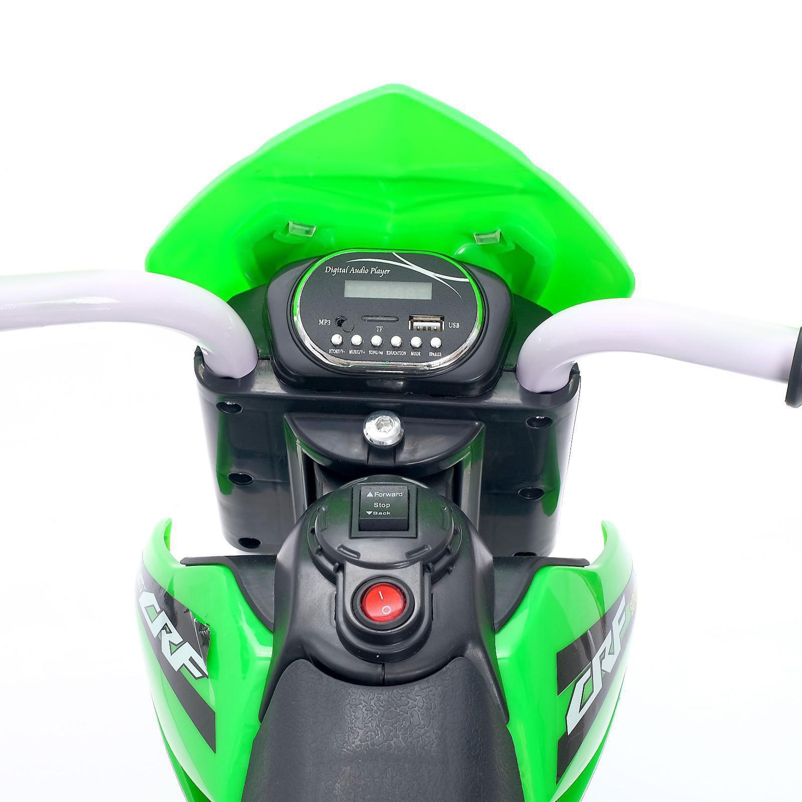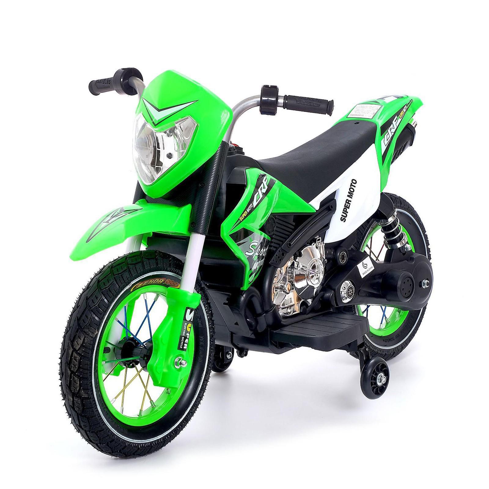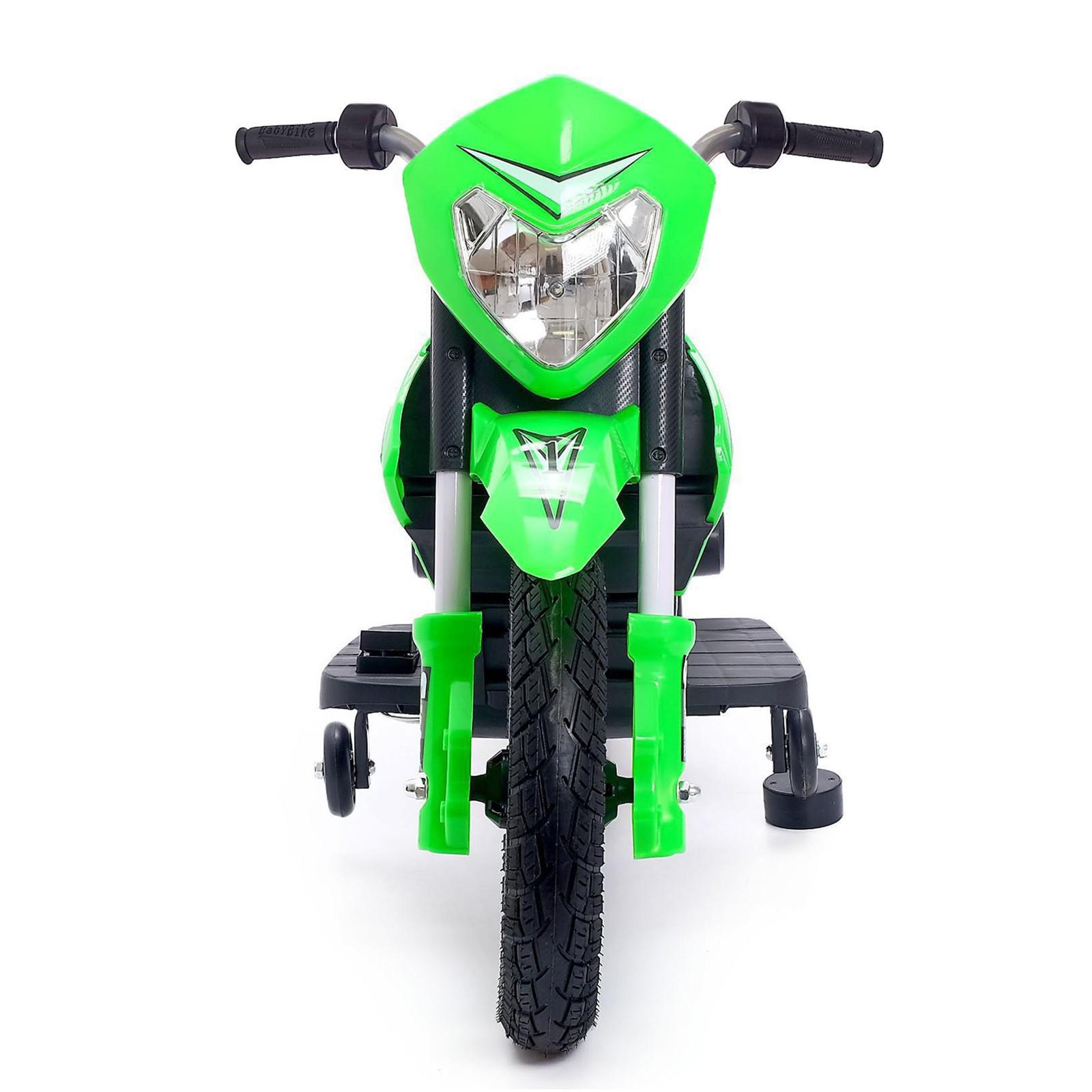 Электромотоцикл «Кросс», пневматические колёса, цвет зелёный, уценка (нет накладок на руль и крыла)