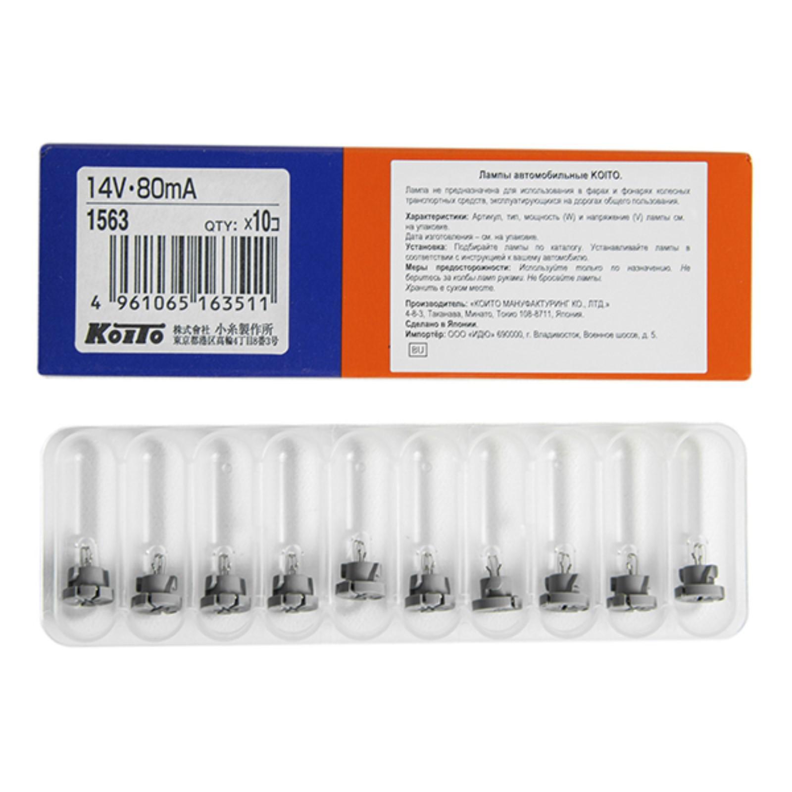 Лампа дополнительного освещения Koito, 14V 80mA T4.2 - пластик. цоколь (прозрач.)1563