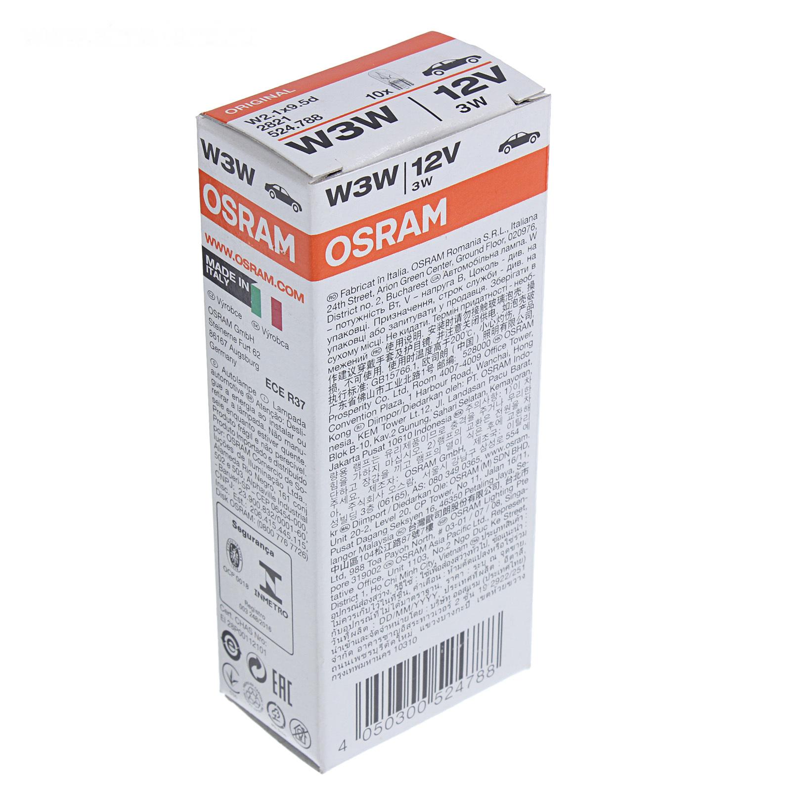 Лампа автомобильная Osram, W3W, 12В, 3 Вт, W2,1x9,5d