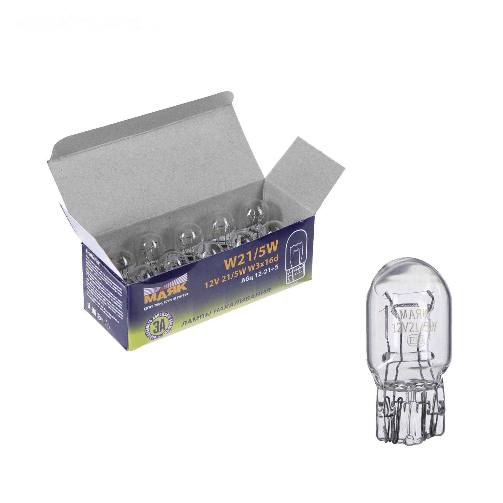 Автолампа "Маяк", 12 В, W21/5W (W3x16d) габарит/стоп 61215бц ,(фасовка 10шт.)