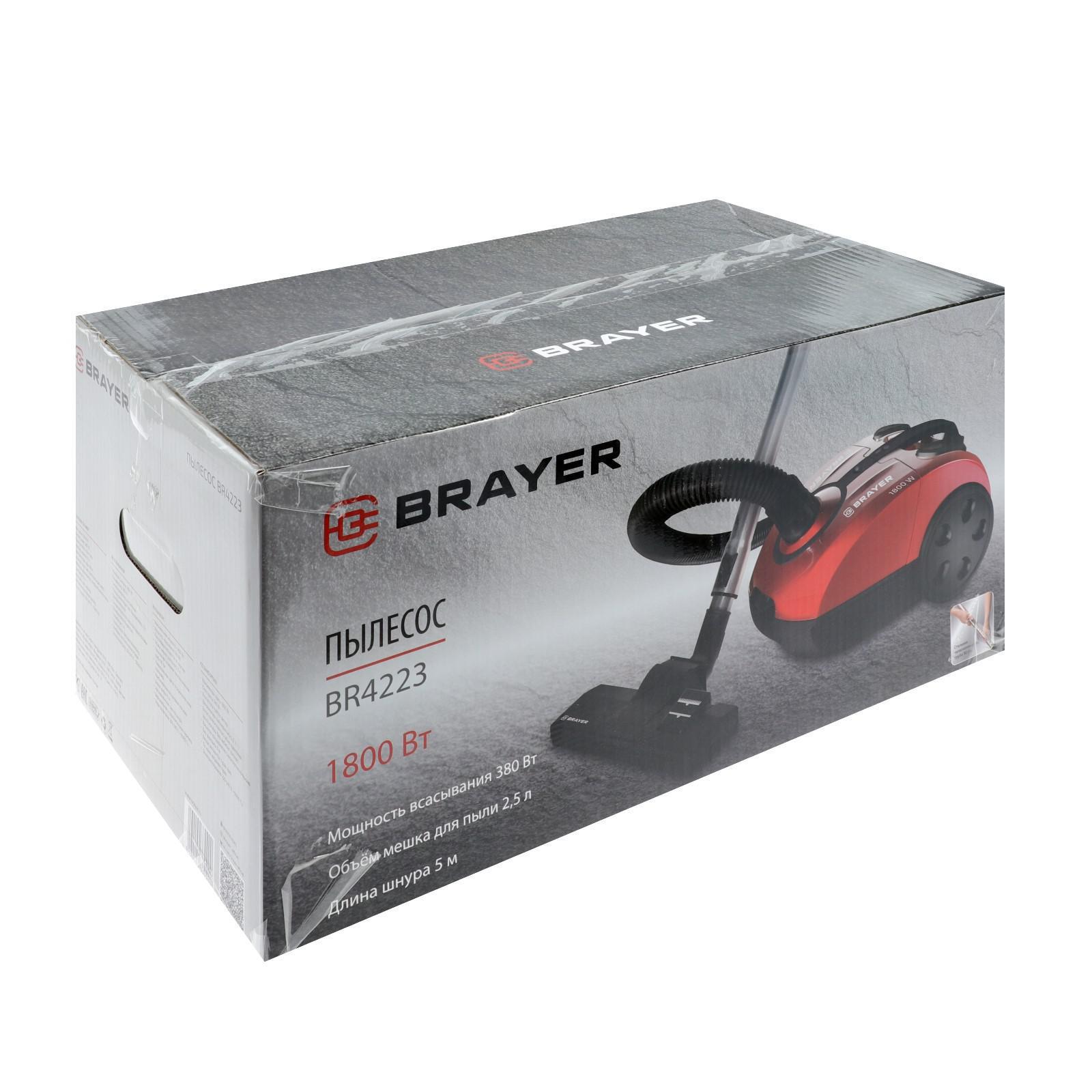 Пылесос BRAYER 4223BR, 1800/380 Вт, 2.5 л, 3 бумажных мешка, красный