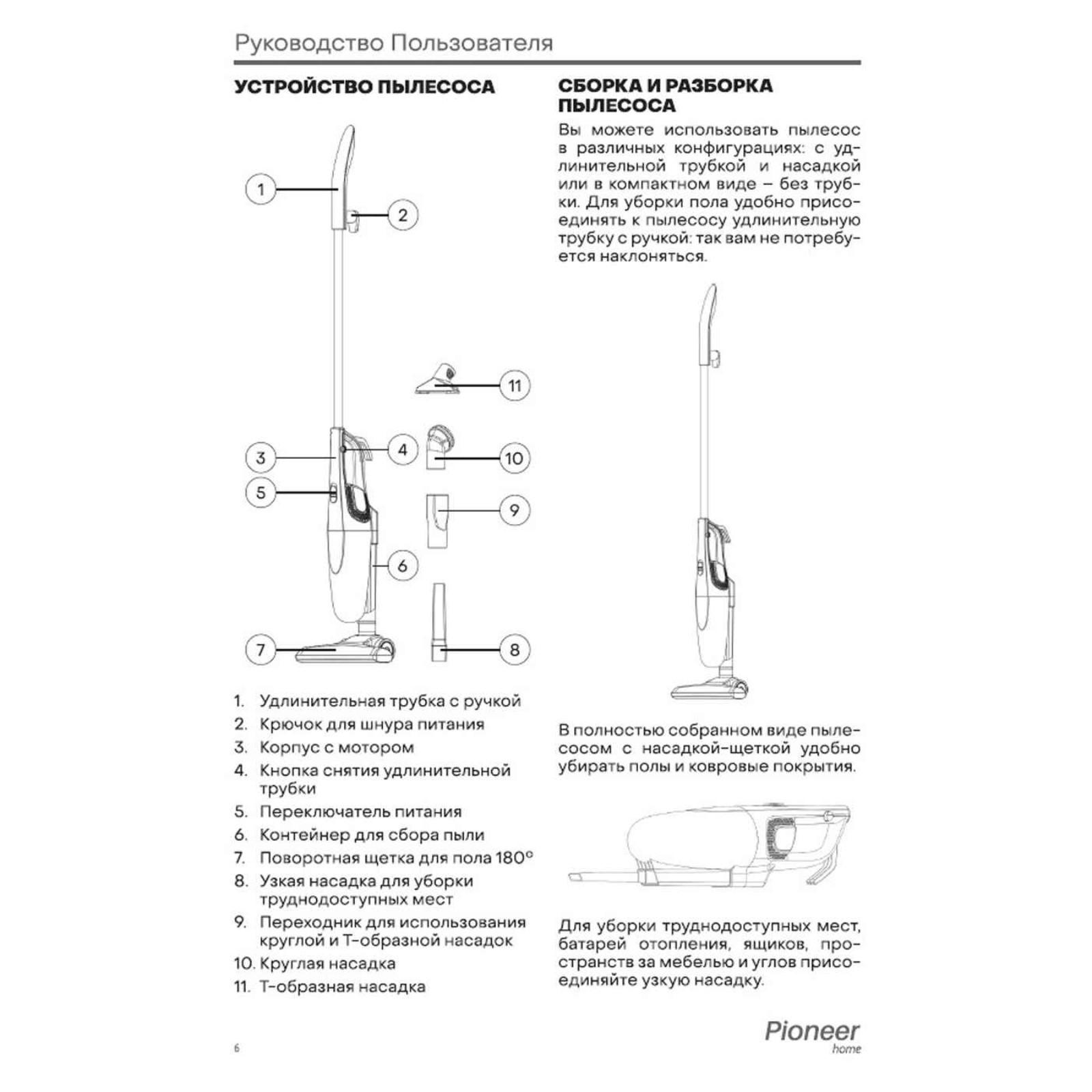 Пылесос Pioneer VC462S, вертикальный, циклонный, 120Вт, 500 мл, цвет серебристый