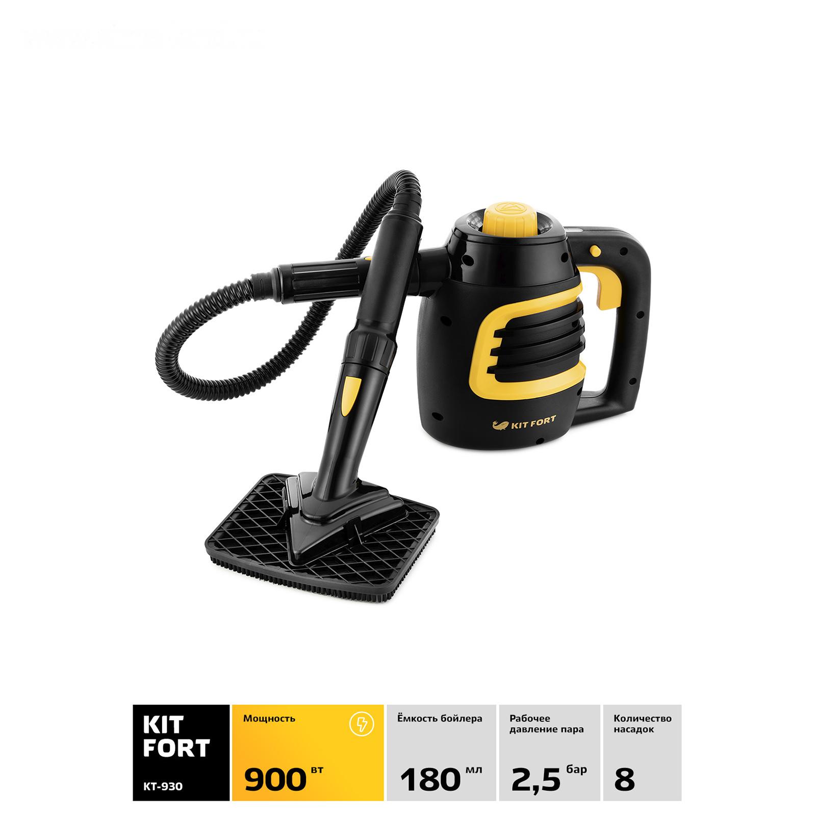 Пароочиститель Kitfort KT-930, 900 Вт, 0.18 л, нагрев 2-3 мин, чёрно-жёлтый