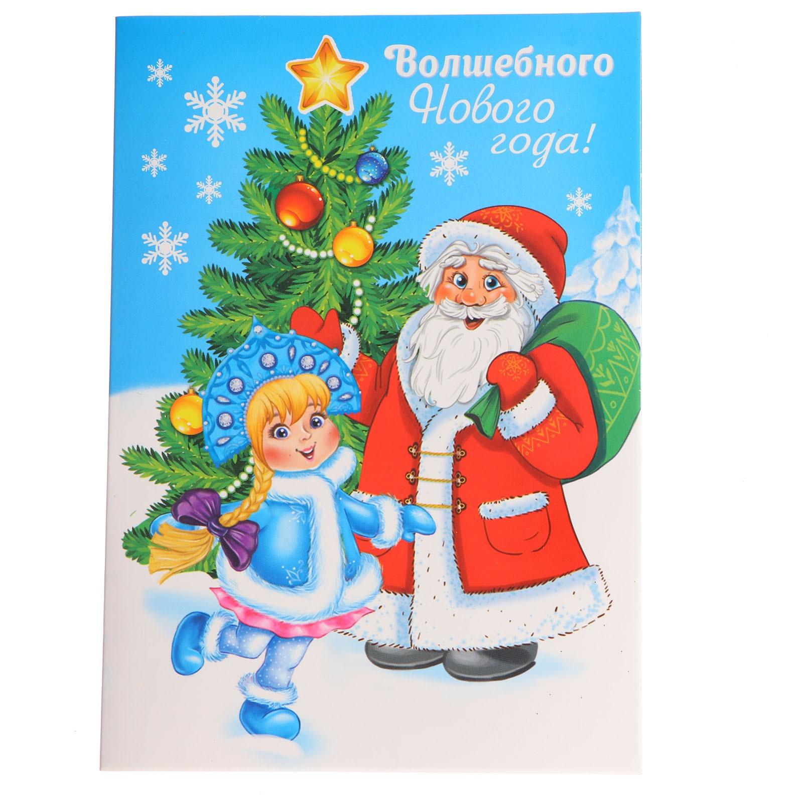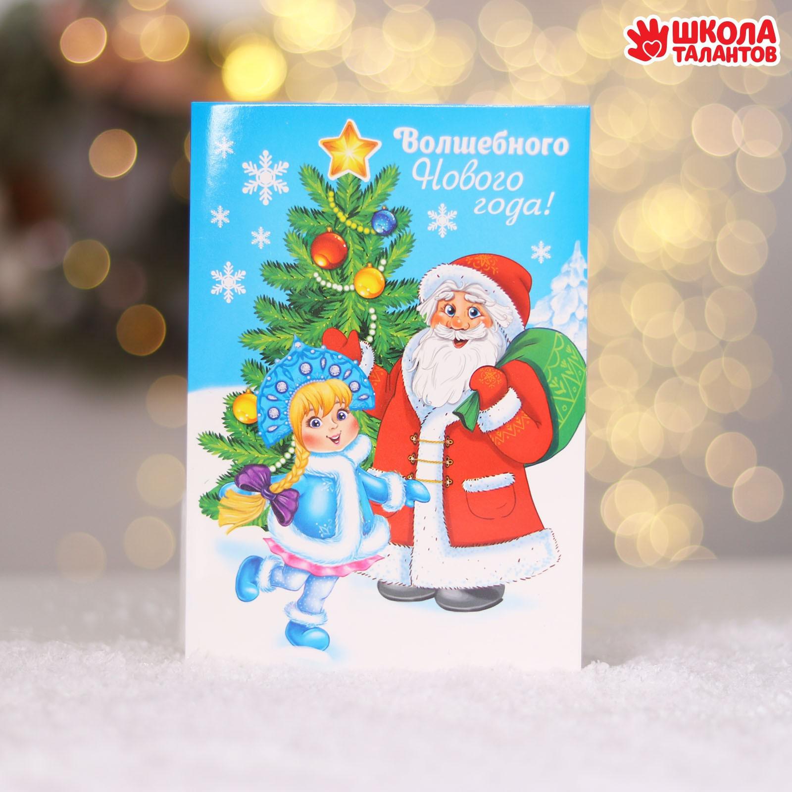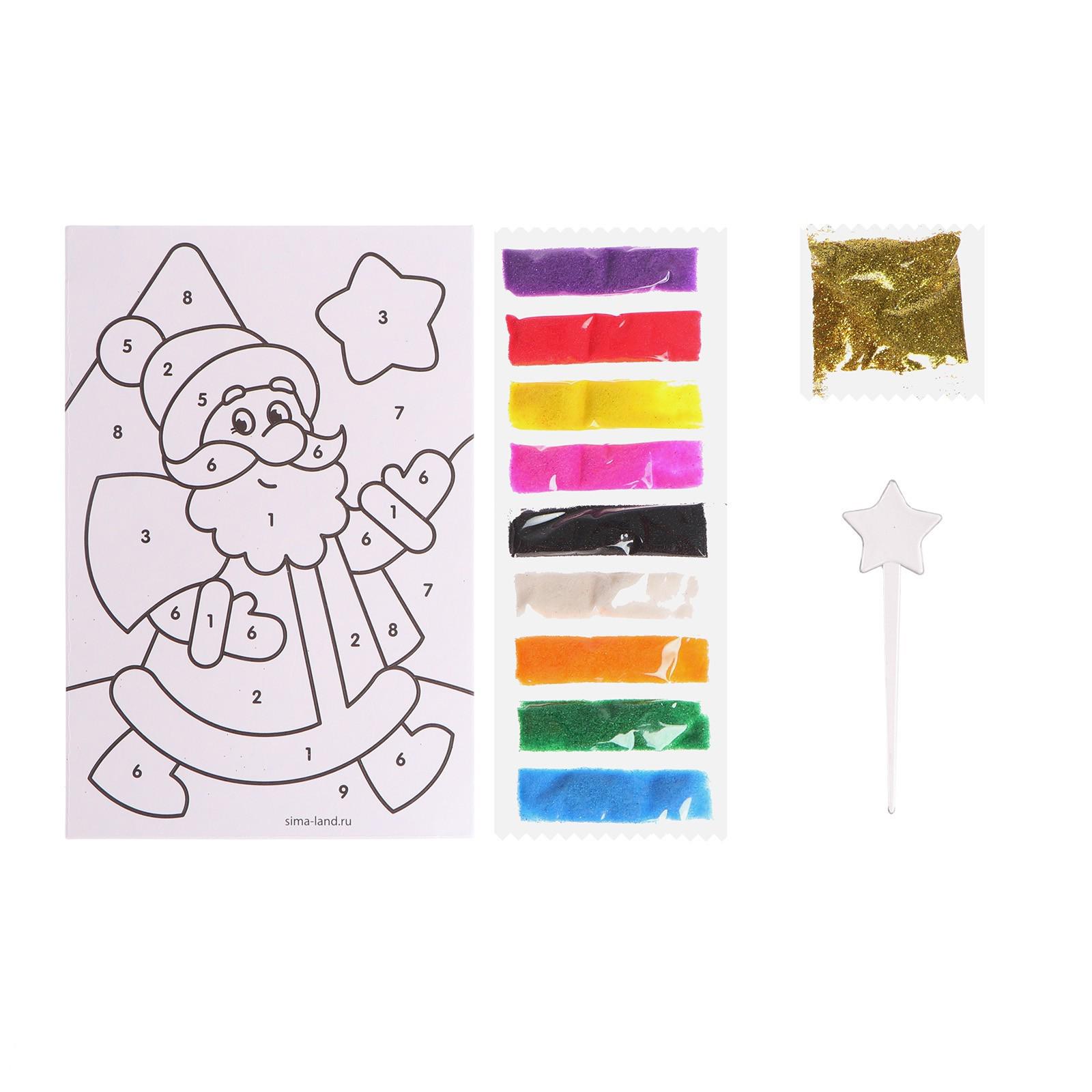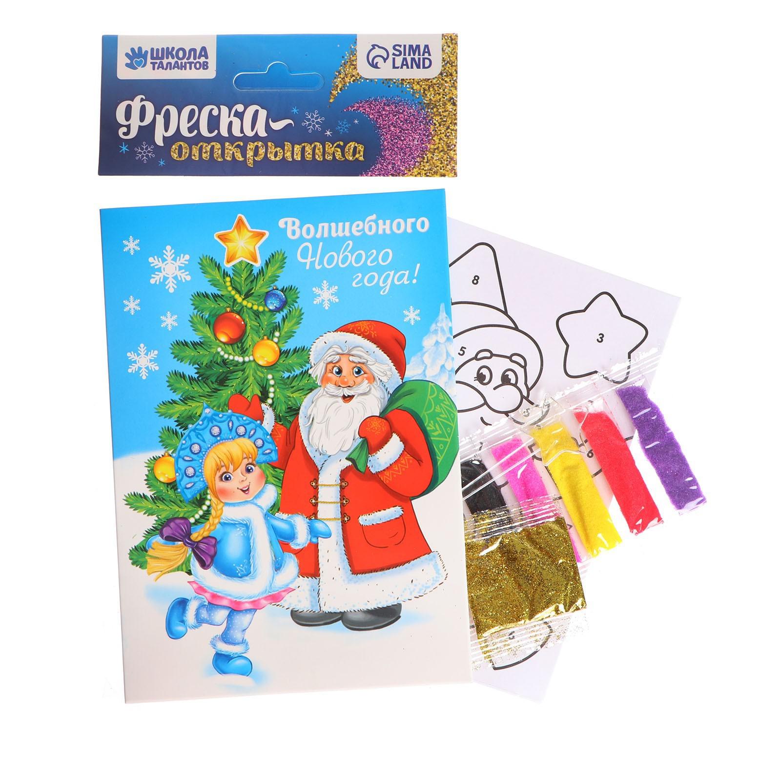 Новогодняя фреска на открытке «Волшебного Нового года!», Дед Мороз, набор: песок 9 цветов 2гр, стека