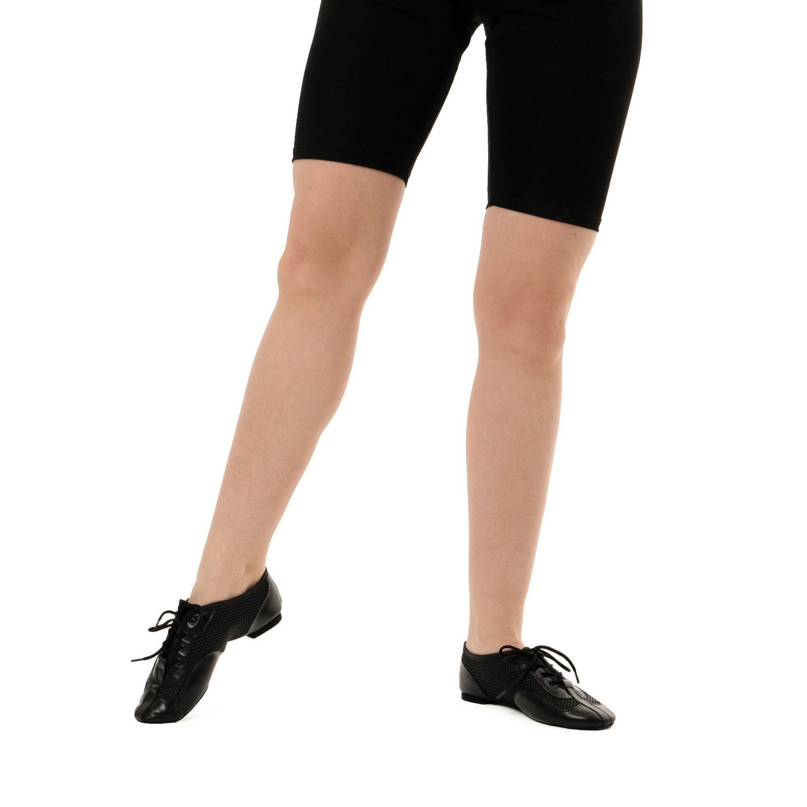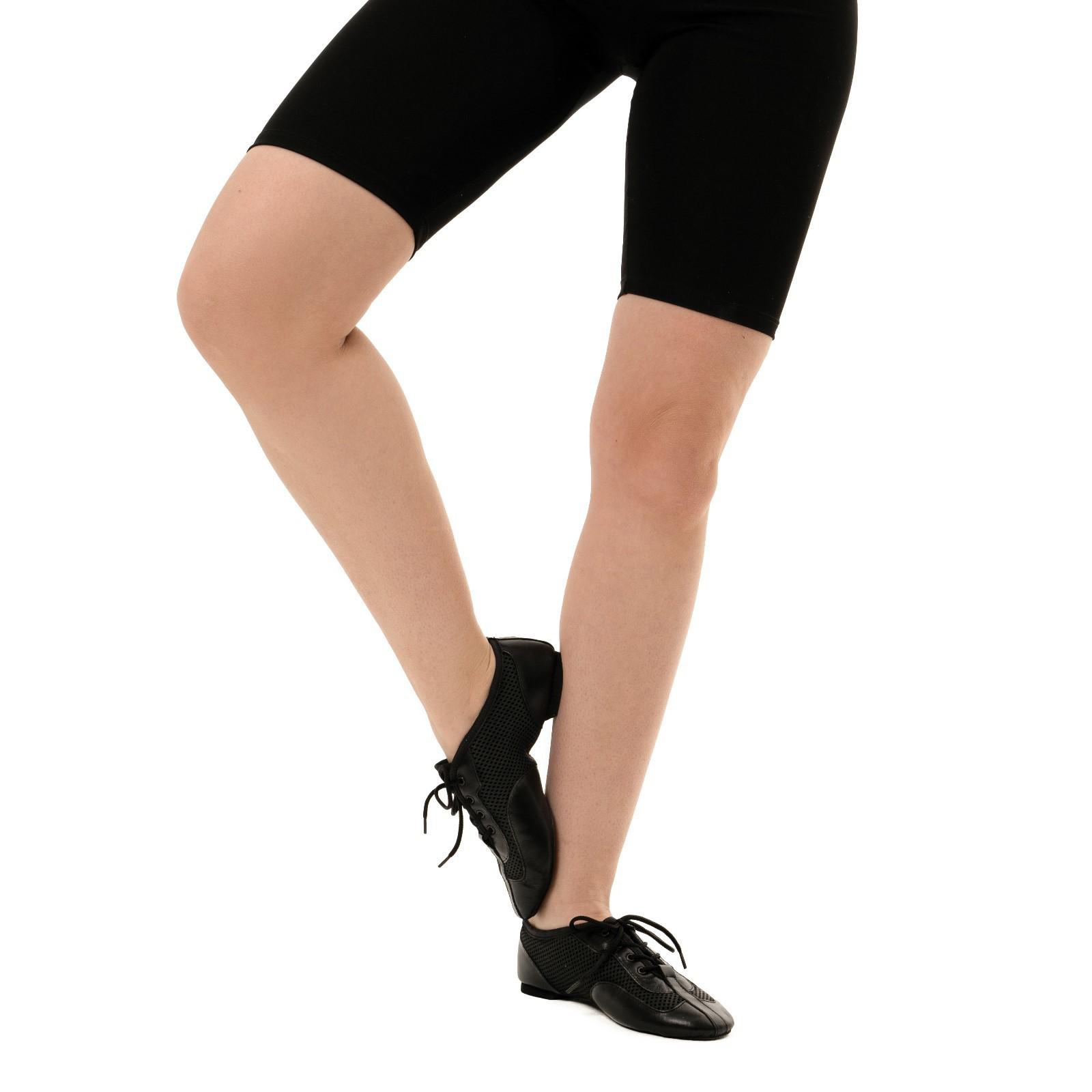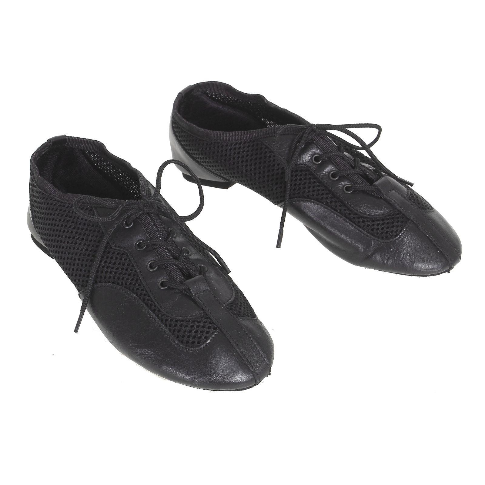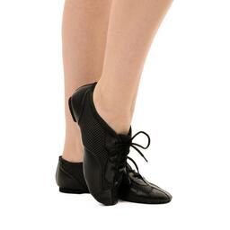 Мягкие джазовки подходят для занятий современными танцами. Разделённая на две части подошва придаёт стопе необходимую гибкость и устойчивость на паркете. Натуральный материал и сетчатые вставки сделают тренировочный процесс комфортнее.