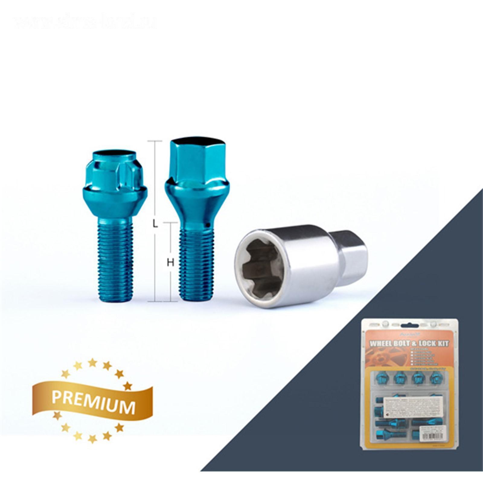 Болт M14x1,5, 52/27, hex17, конус, синий, 16 шт, 4 секретки+ключ