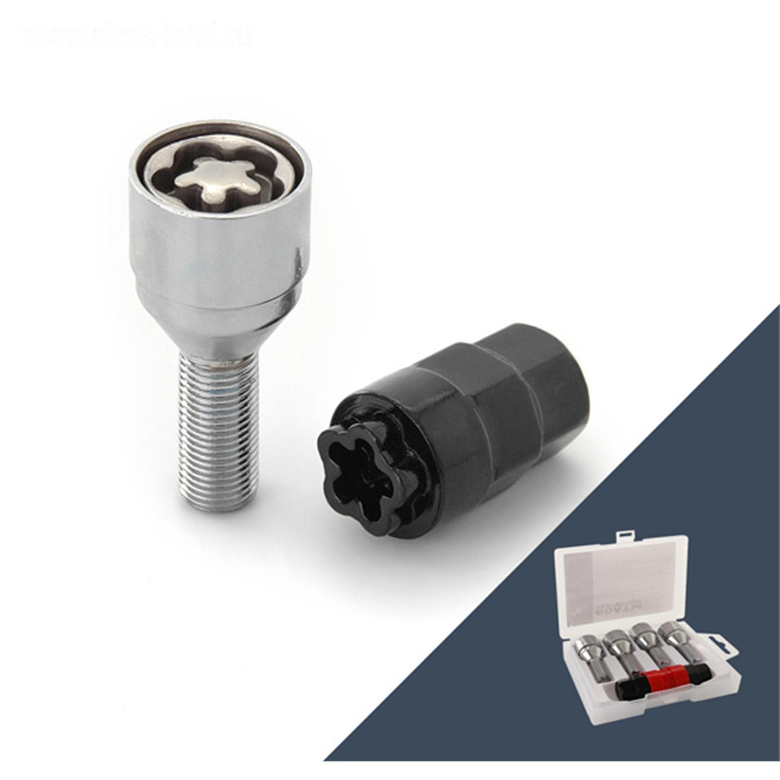 Болт секретный M12x1,5, 56/28, конус, хром, 4 шт +2 ключа, пластиковая коробка