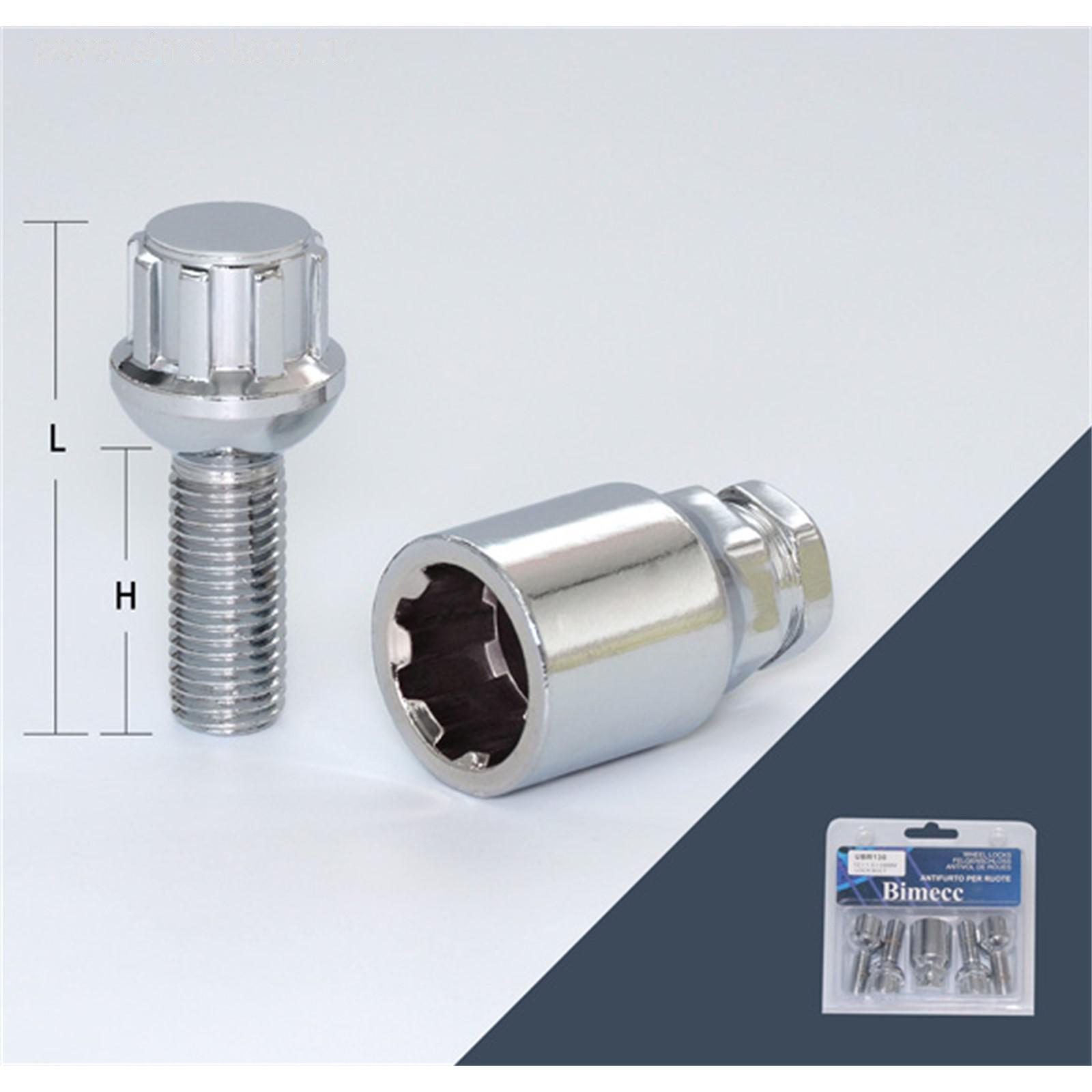 Болт секретный M14x1,5, 51/30, сфера R13, цинк, 4 шт +ключ