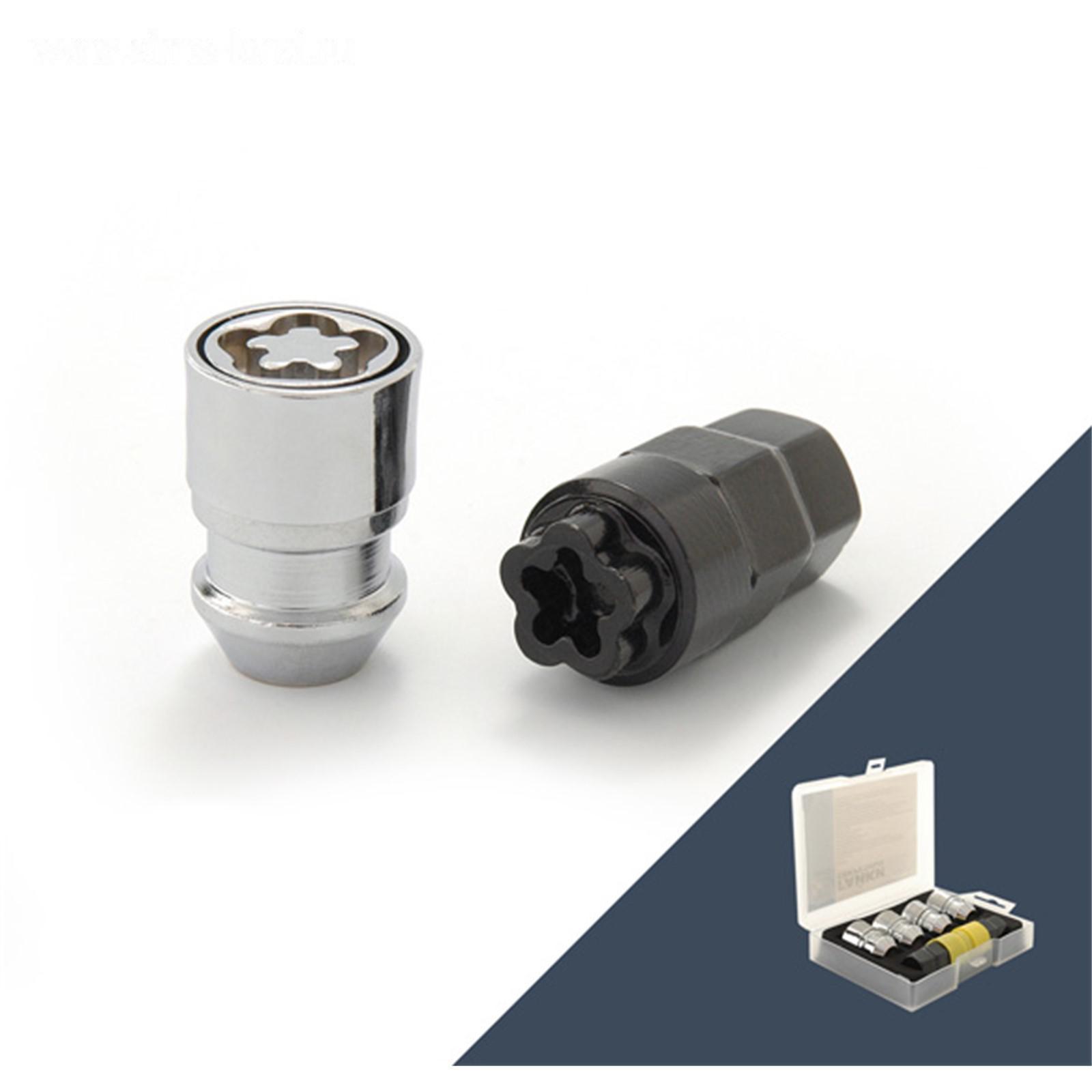 Гайка секретная M12x1,25, 36, конус, закрытая, хром, 4 шт +2 ключа, пластиковая коробка