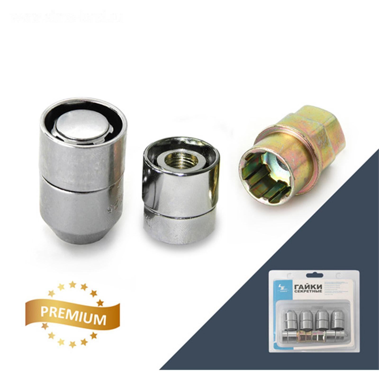 Гайка секретная M12x1,25, 35, конус, закрытая, хром, 6+2 ключа