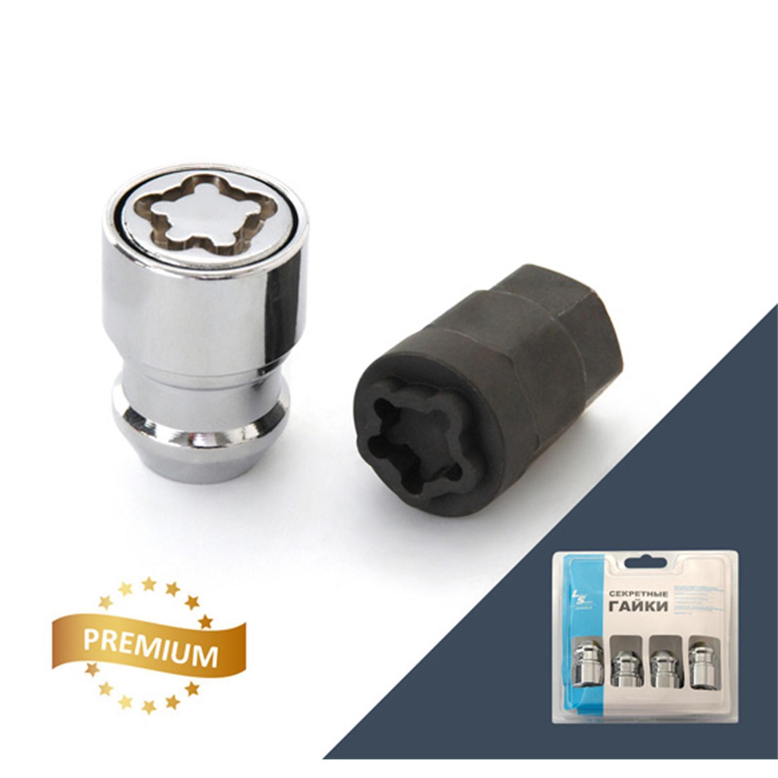 Гайка секретная M12x1,5, 36, конус, закрытая, хром, 4 шт +2 ключа