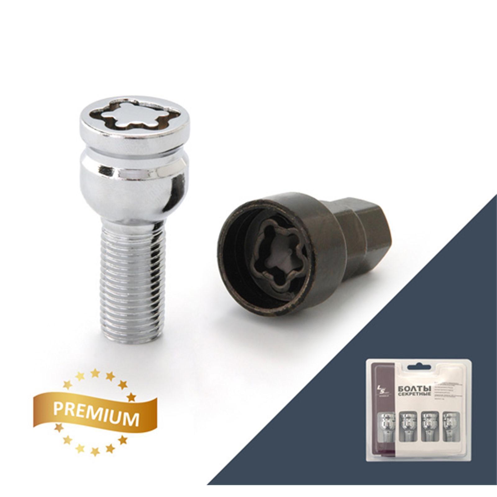 Болт секретный M14x1,5, 54/28, сфера, хром, 4 шт +2 ключа