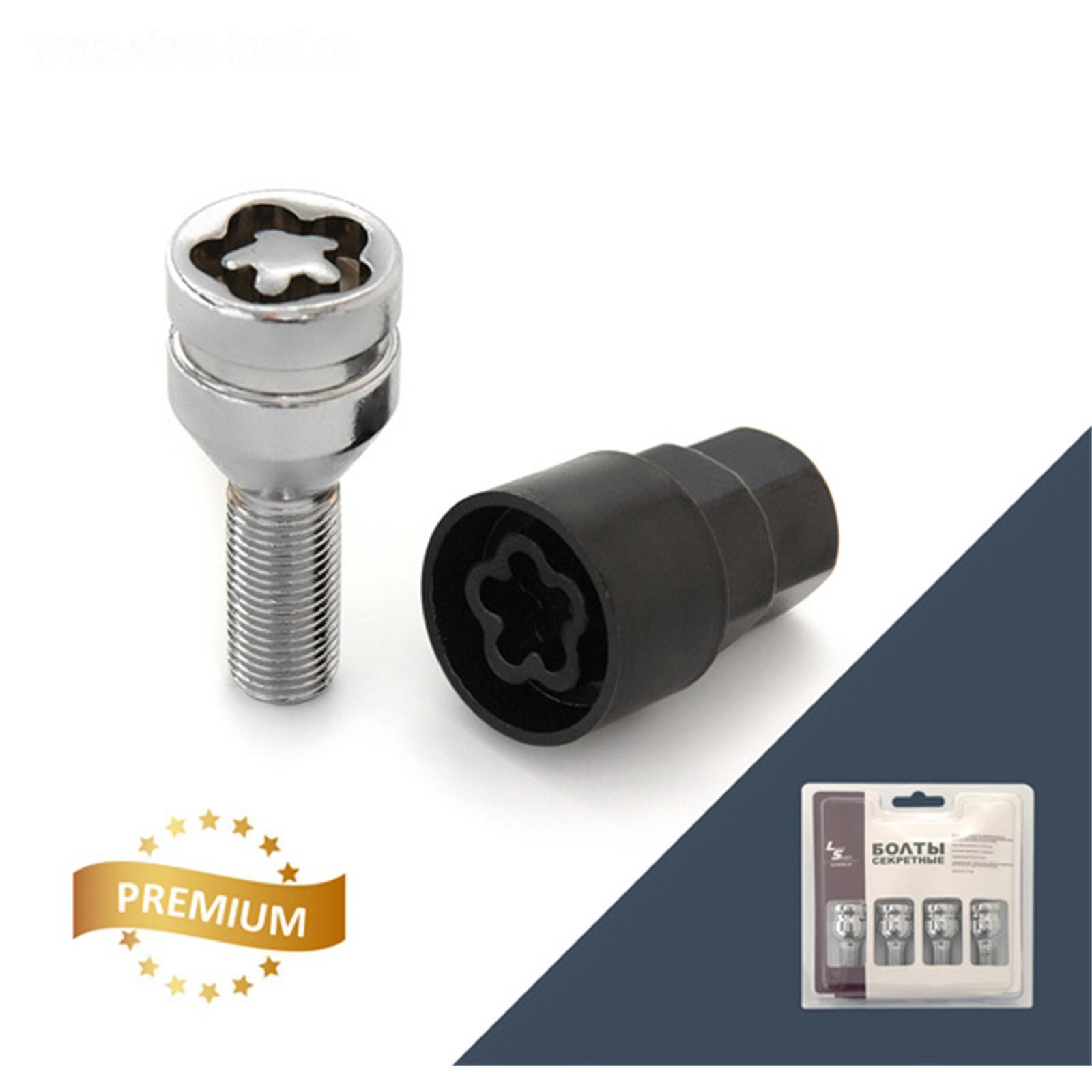 Болт секретный M12x1,5, 53/28, конус, хром, 4 шт +2 ключа