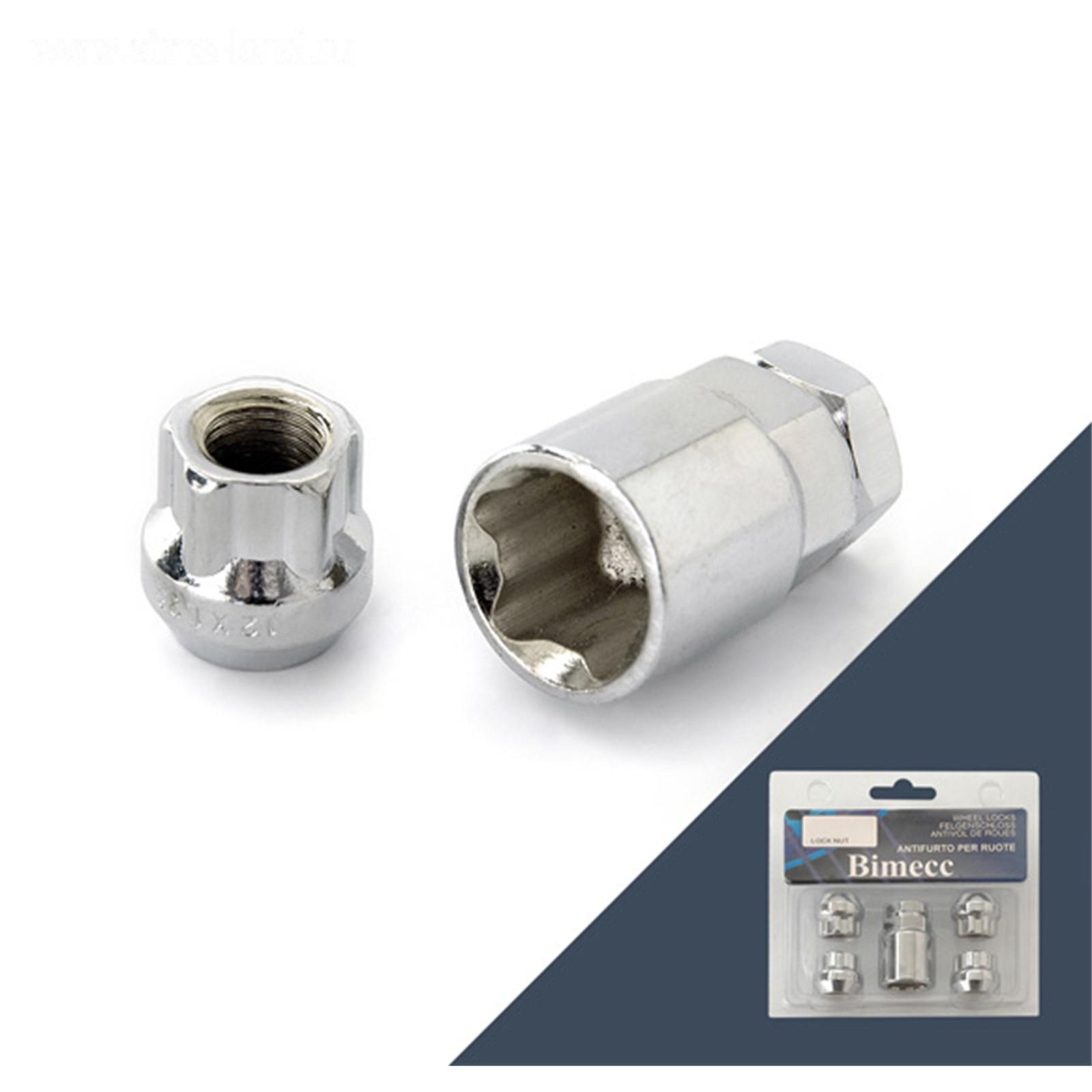 Гайка секретная M14x1,5, 21, конус, открытая, цинк, 4 шт +ключ
