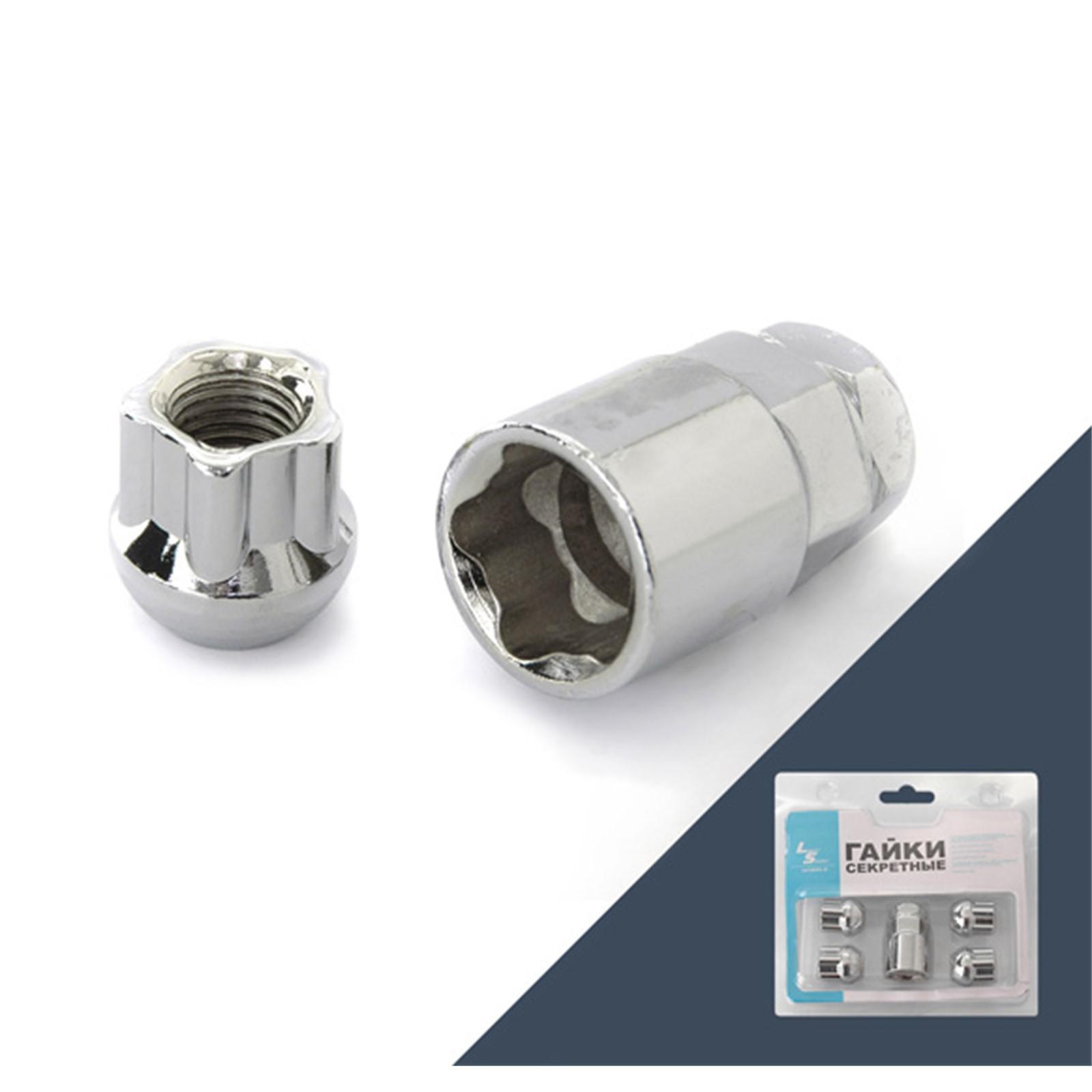 Гайка секретная M12x1,5, 22, сфера R13, открытая, хром, 4 шт +ключ