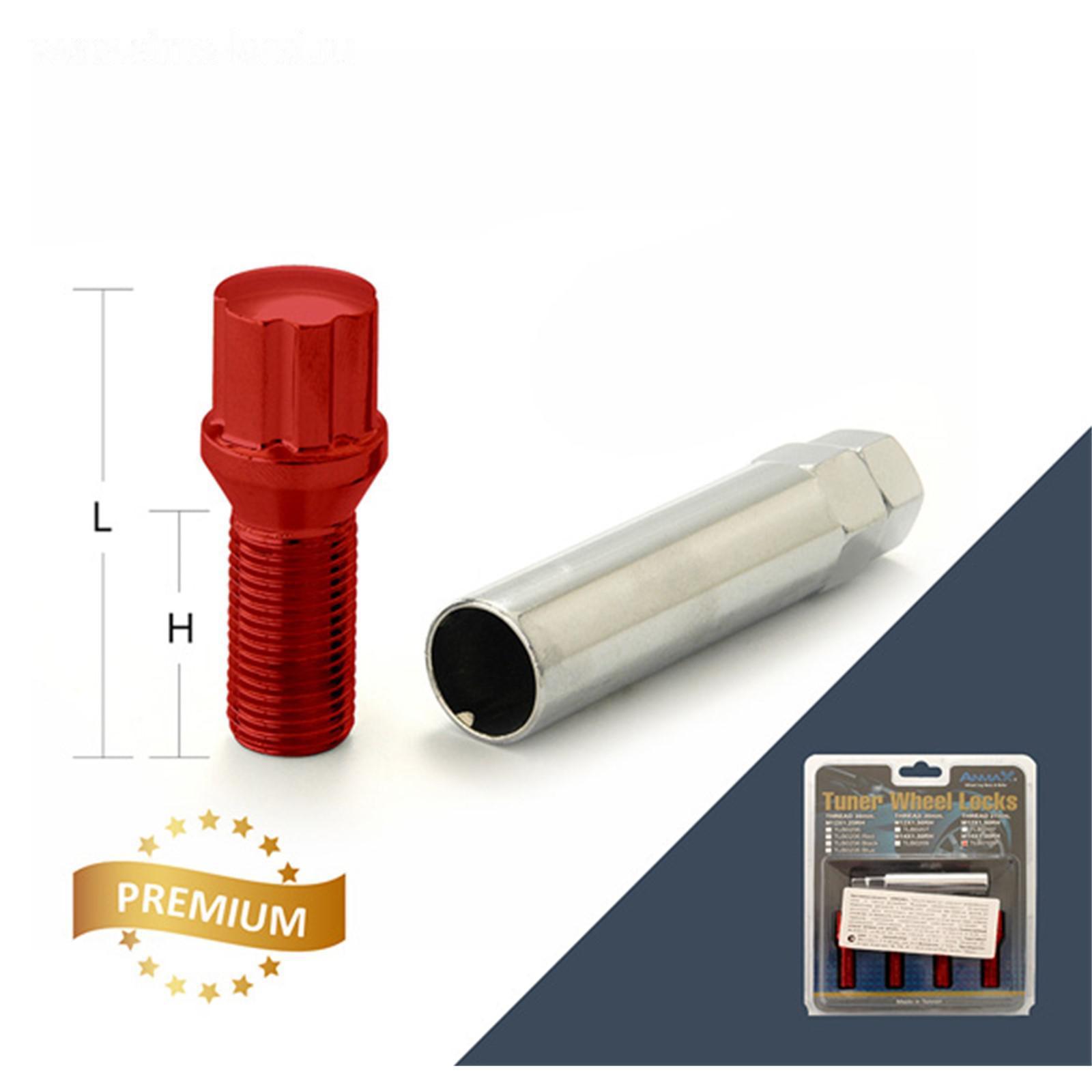 Болт секретный M12x1,25, 55/30, внешний спец, красный, 4 шт +ключ