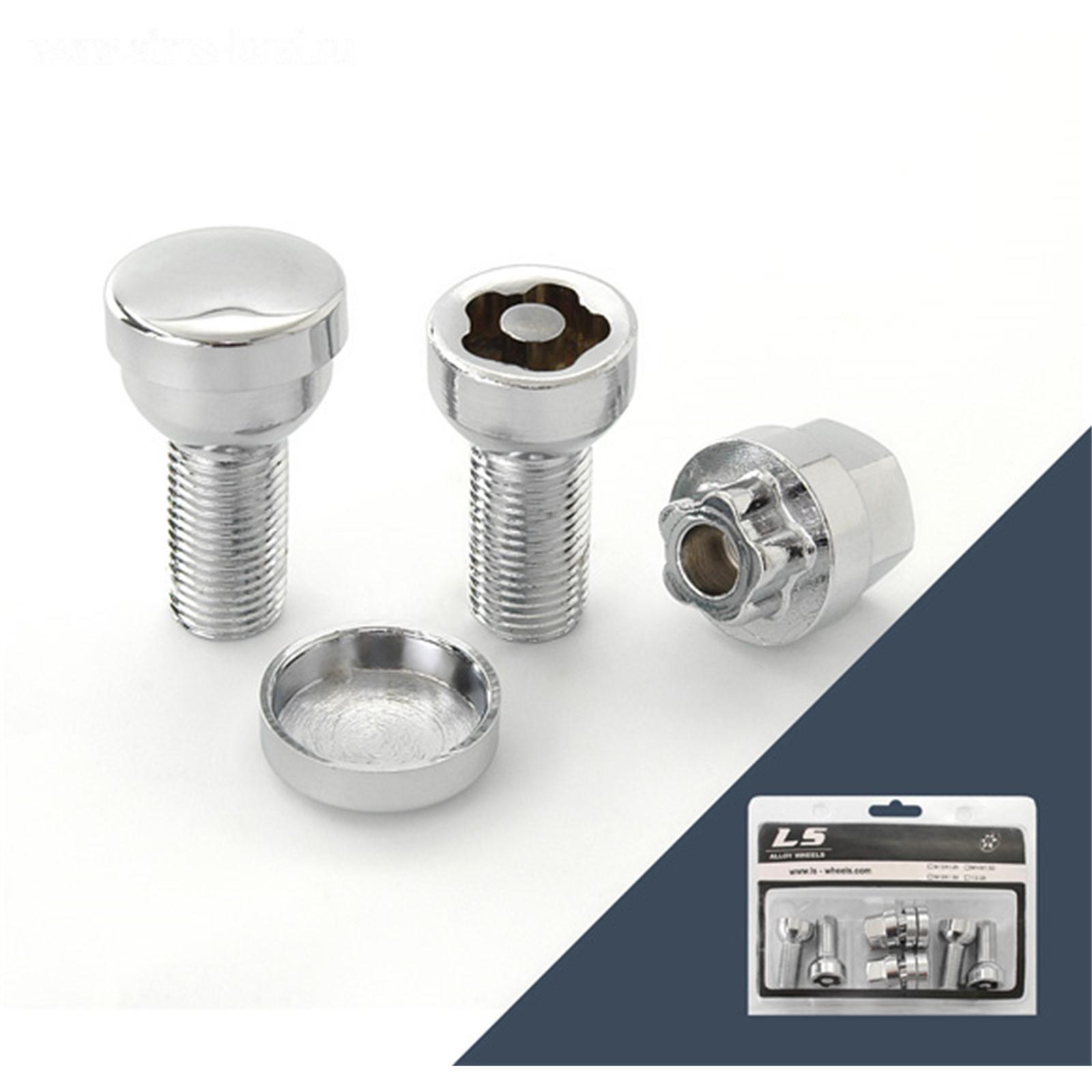 Болт секретный M14x1,5, 40/27, сфера, хром, 4 шт +2 ключа