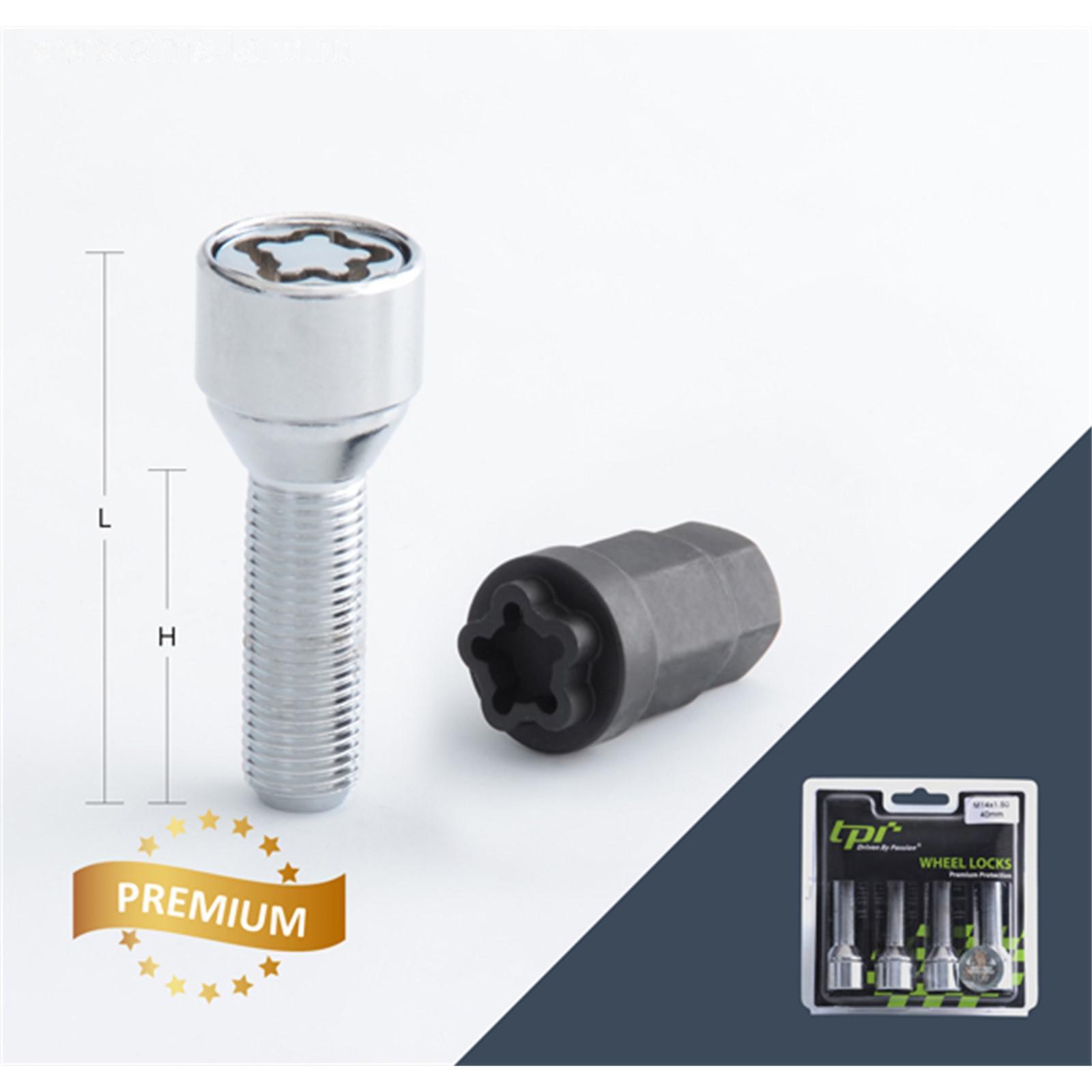 Болт секретный M14x1,5, 65/40, hex17-hex19, конус, хром, 4 шт +2 ключа