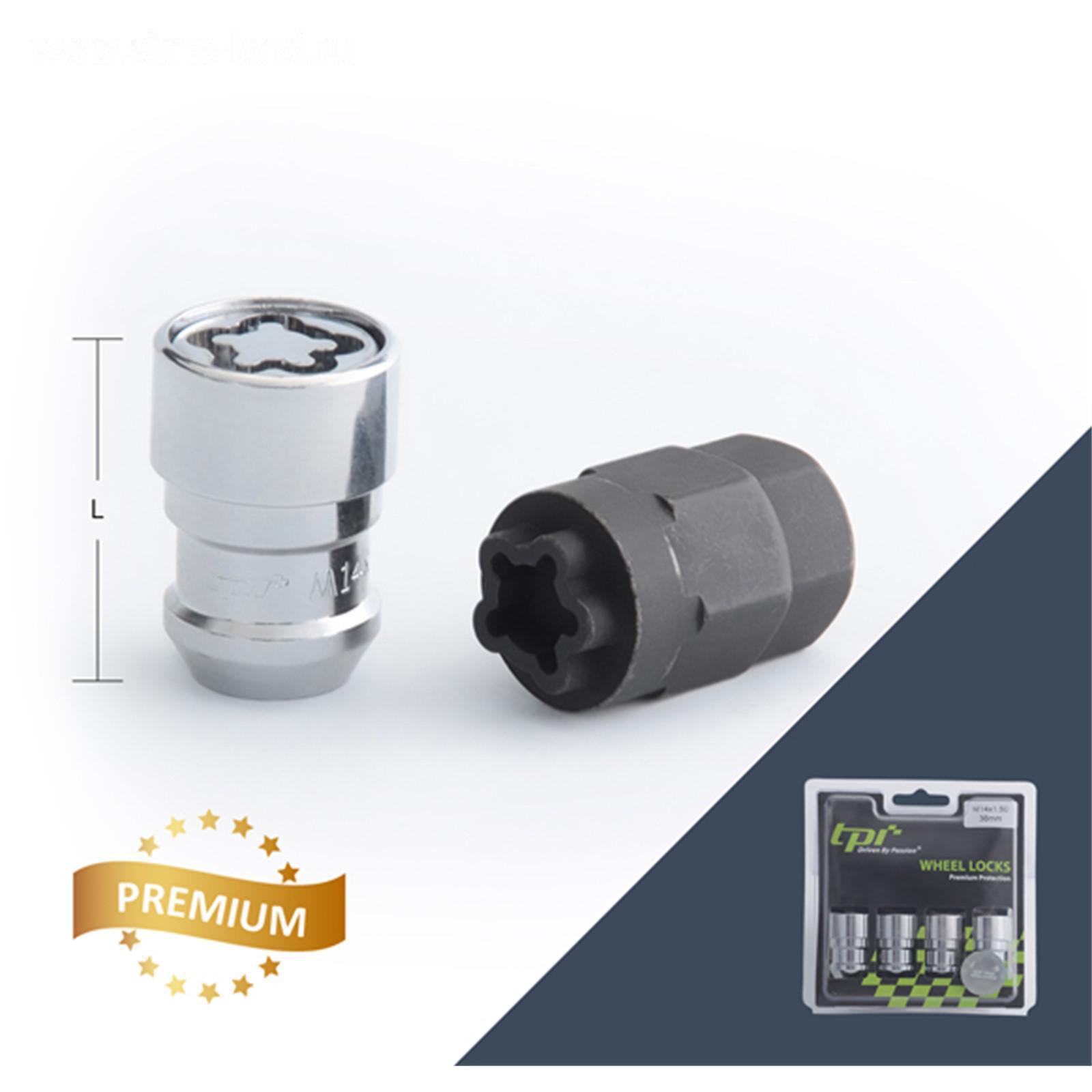 Гайка секретная M14x1,5, 36, hex21-hex22, Конус/закрытая, хром, 4 шт +2 ключа