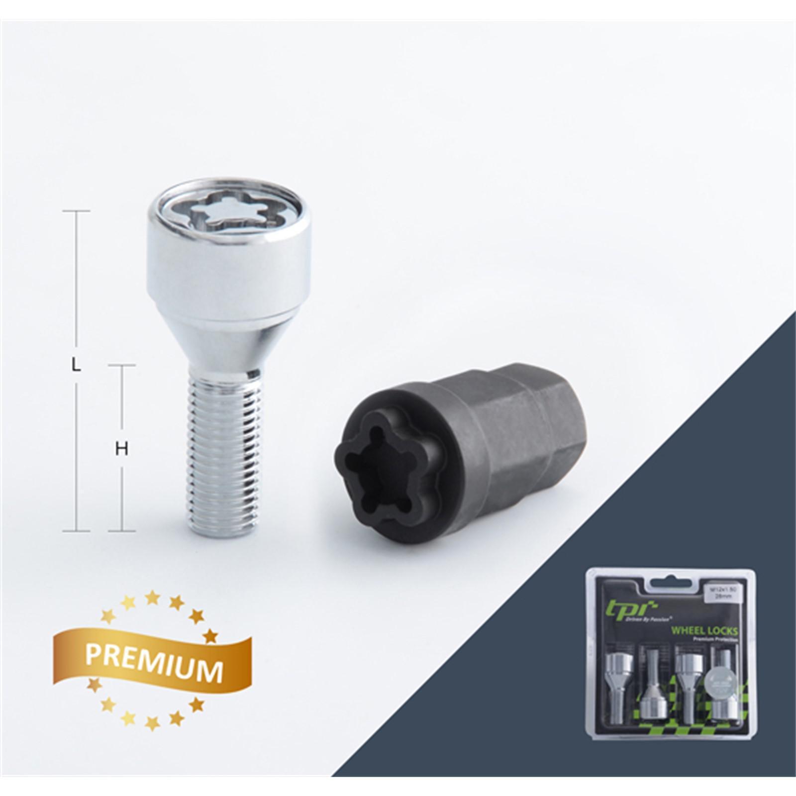 Болт секретный M12x1,5, 53/28, hex17-hex19, конус, хром, 4 шт +2 ключа