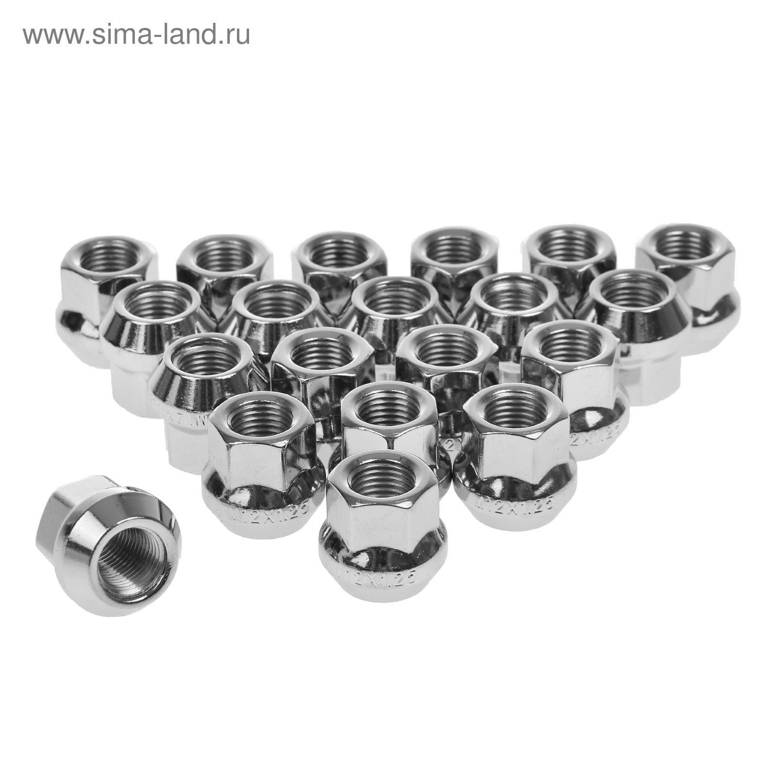 Гайки 12x1.25 мм, высота 21 мм, под ключ 17 мм, конус, открытые, хром