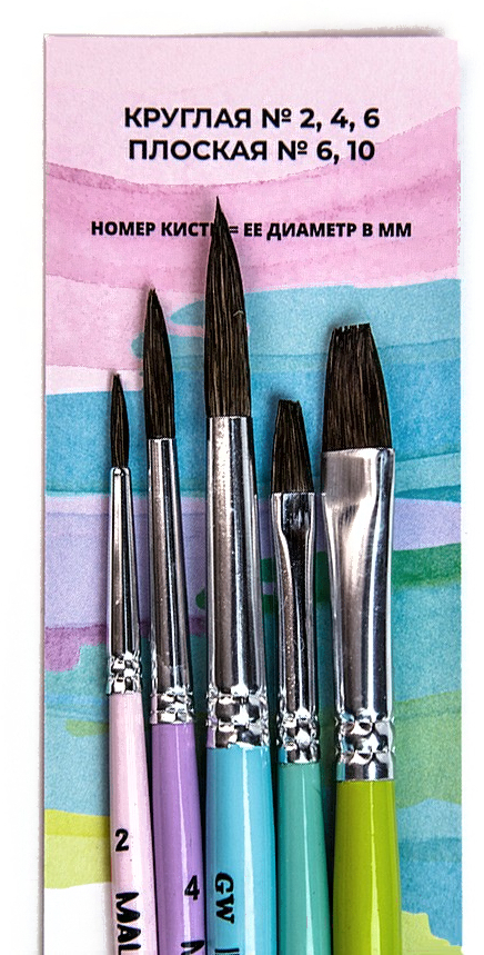 - Количество кистей в наборе 5 шт.