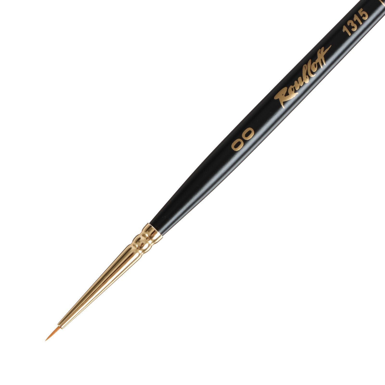Кисть Roubloff рыжая жесткая Синтетика, круглая, укороченная, серия 1315 № 00, ручка короткая чёрная матовая, жёлтая обойма