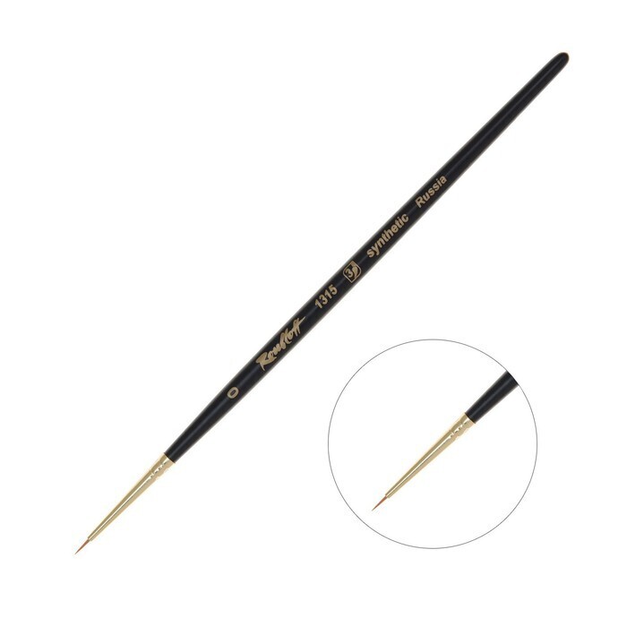 Кисть Roubloff рыжая жесткая Синтетика, круглая, укороченная, серия 1315 № 0, ручка короткая чёрная матовая, жёлтая обойма