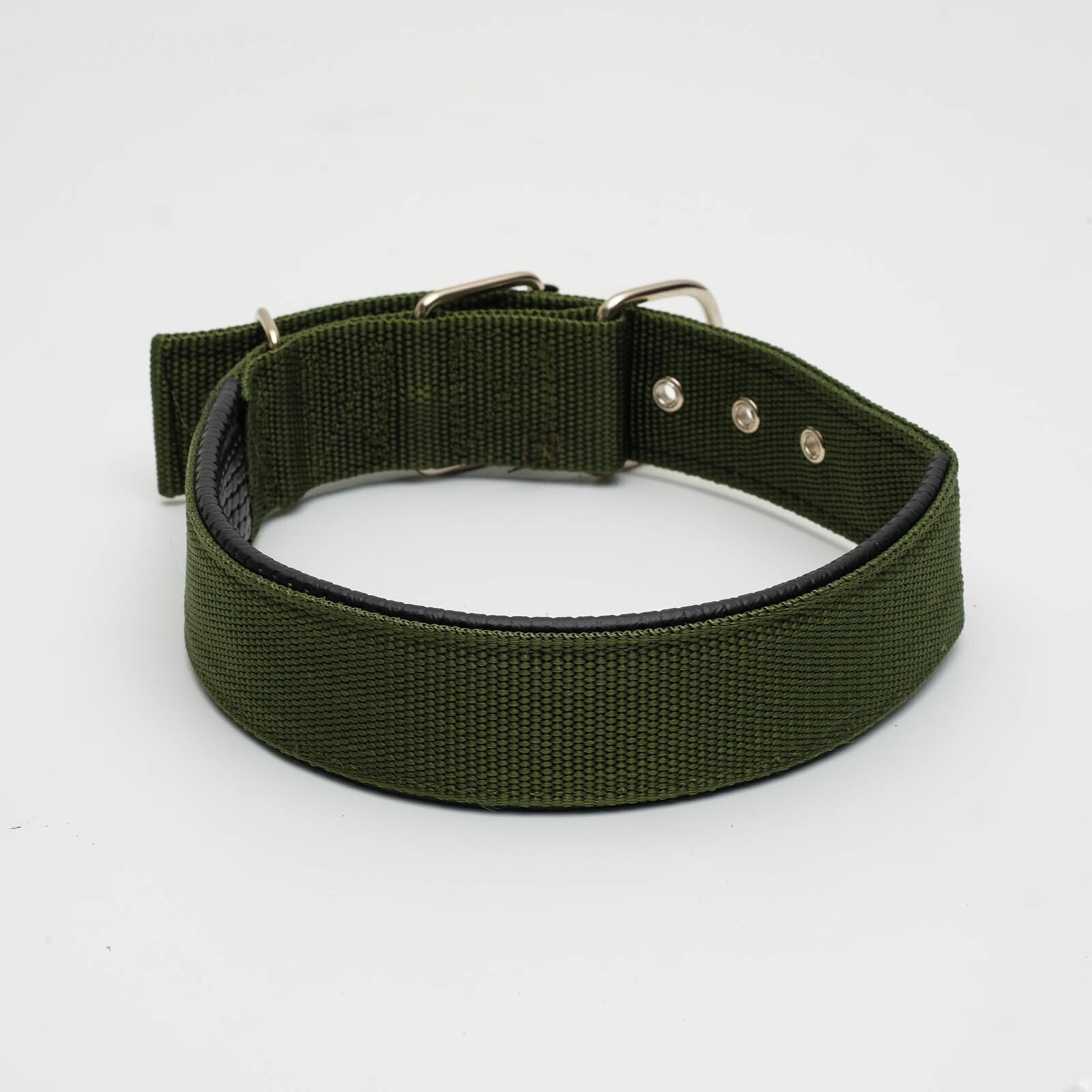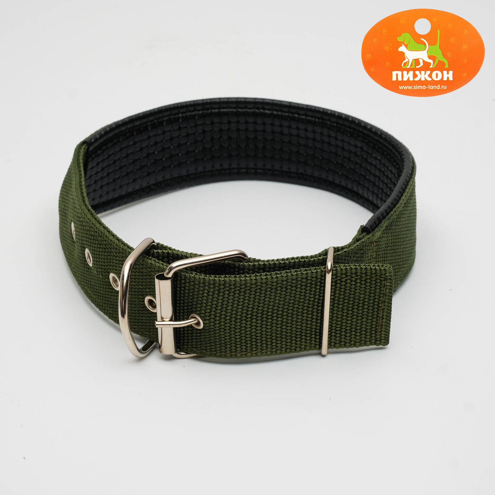 Ошейник "Комфорт" комбинированный (полиэстер, искусственная кожа), 70 х 4 см, ОШ 48-58 см, тёмно-зел