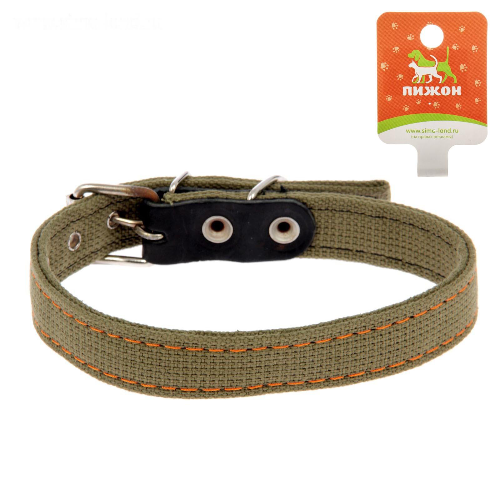 Ошейник брезентовый двухслойный, 54 х 2,5 см, ОШ 35-45 см, хаки