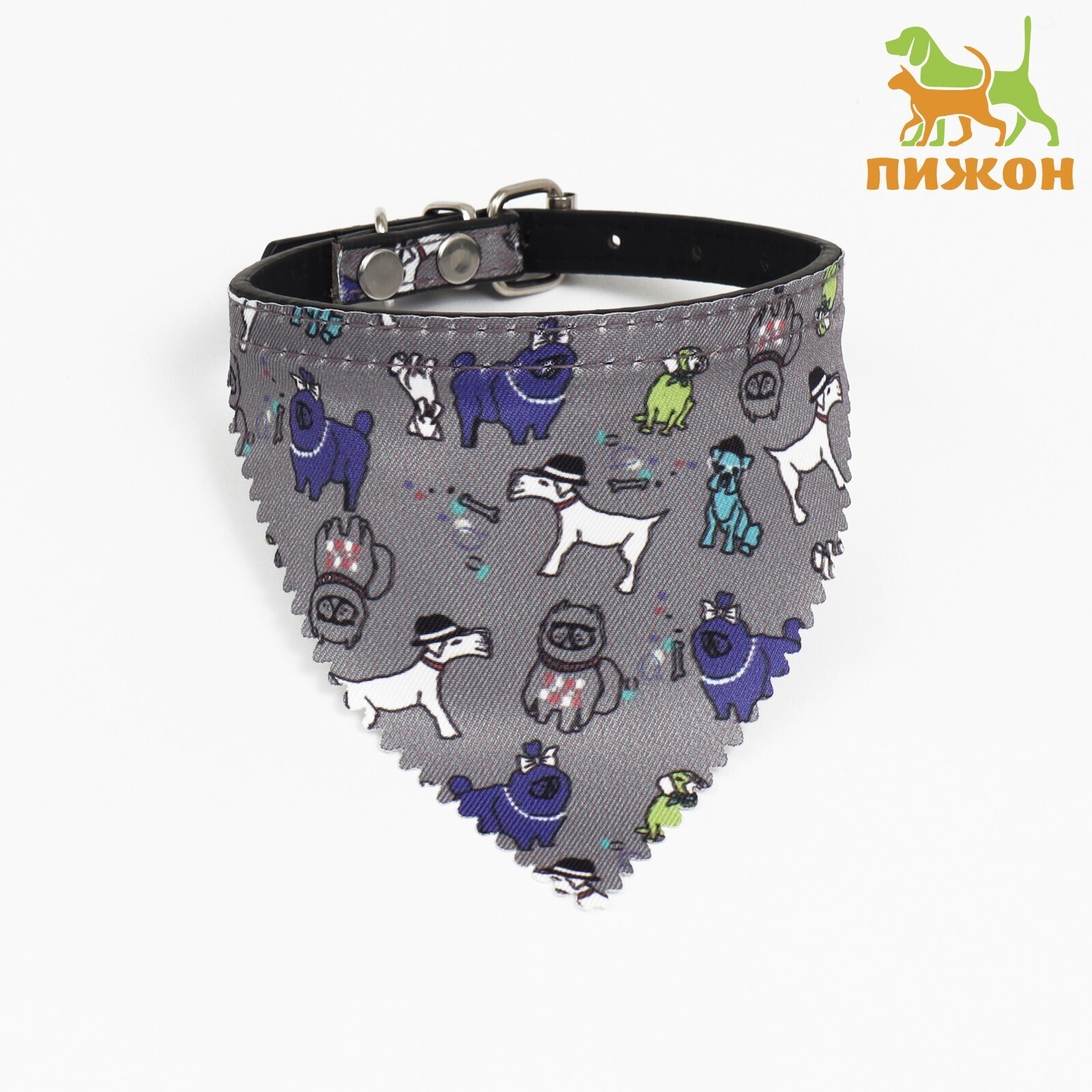 Ошейник с косынкой "Яркая жизнь", 32 х 1 см, серый