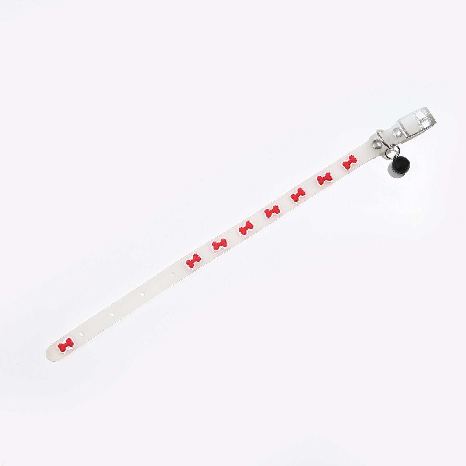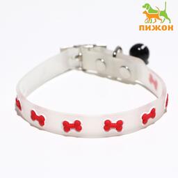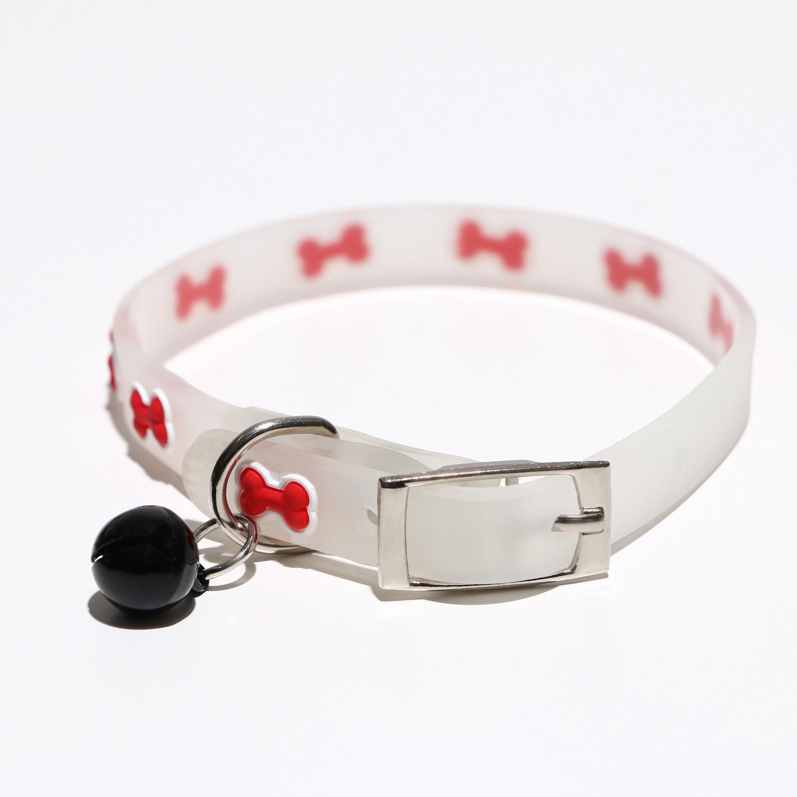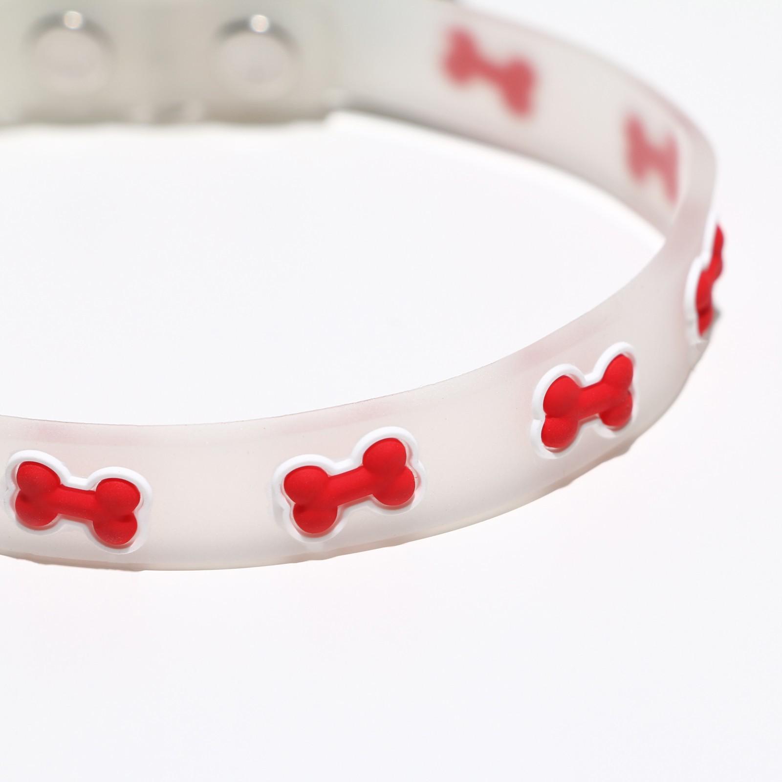 Ошейник "Косточки", 28 х 1 см, ОШ 18-24 см, прозрачный/красный