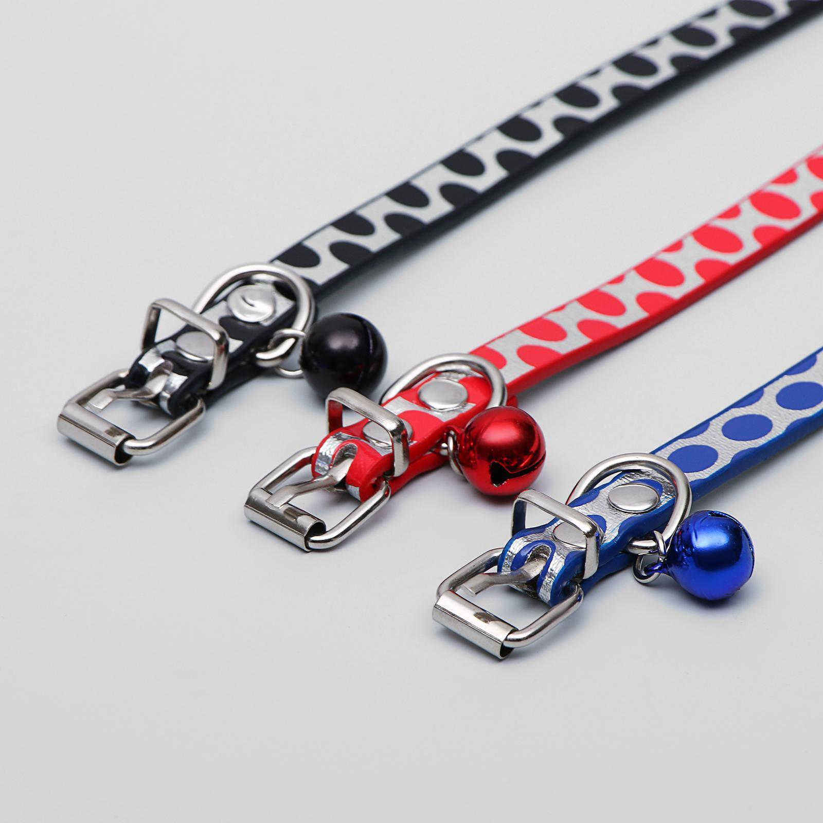 Модный ошейник для собак, любящих быть в центре внимания! Выполнен из качественного и прочного материала. Аксессуар украшен ярким бубенчиком.