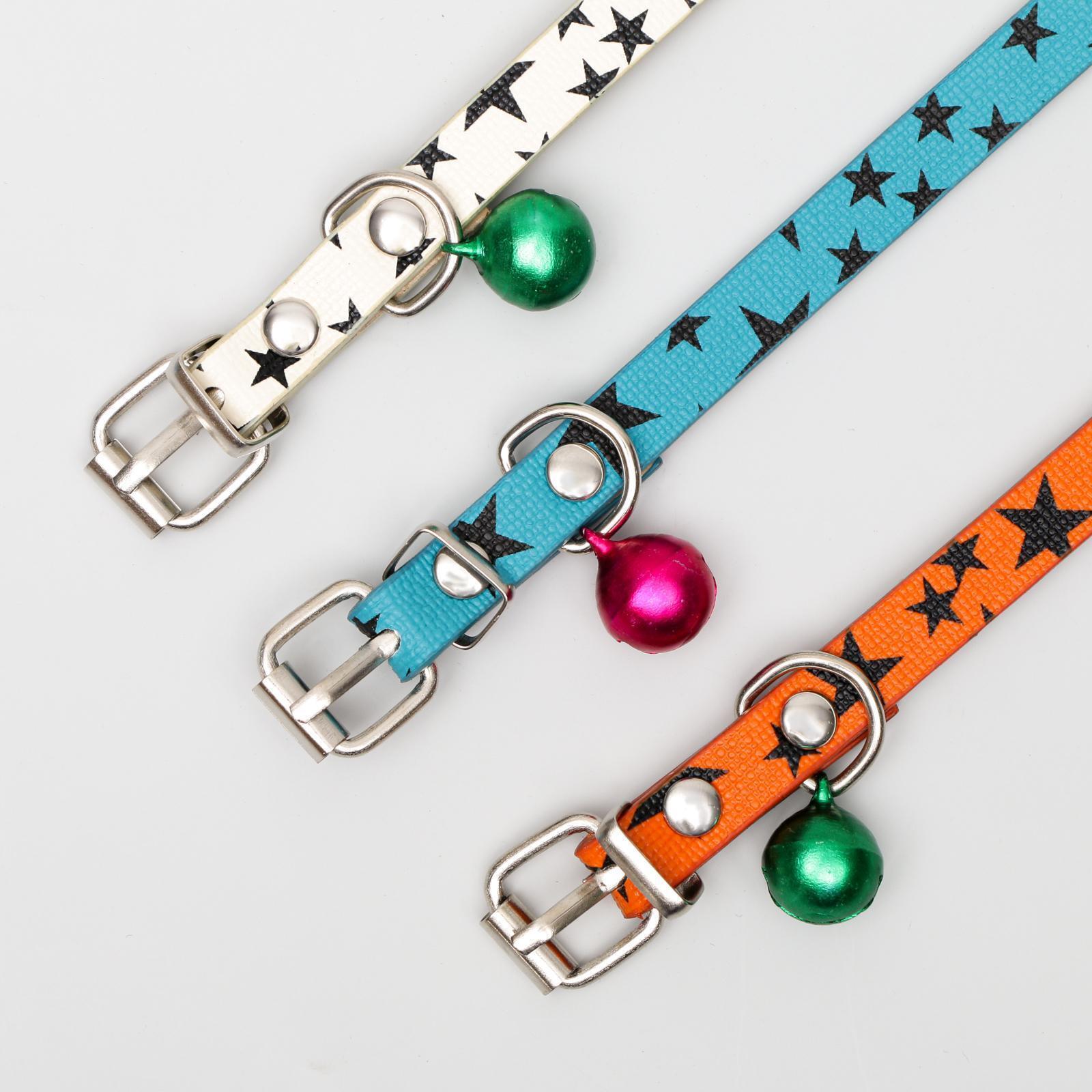 Ошейник "Звёздочки" сшит из искусственной кожи и имеет яркий дизайн. Благодаря небольшой ширине изделие будет аккуратно смотреться на Вашем питомце и не доставит никакого дискомфорта.