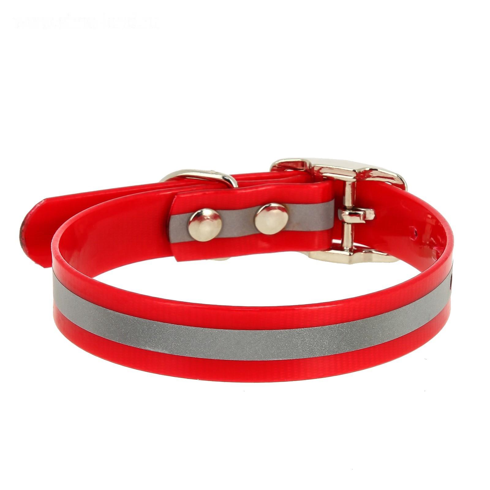 Ошейник из биотана со светоотражающей полосой, ОШ 24-28 х 1,2 см, красный