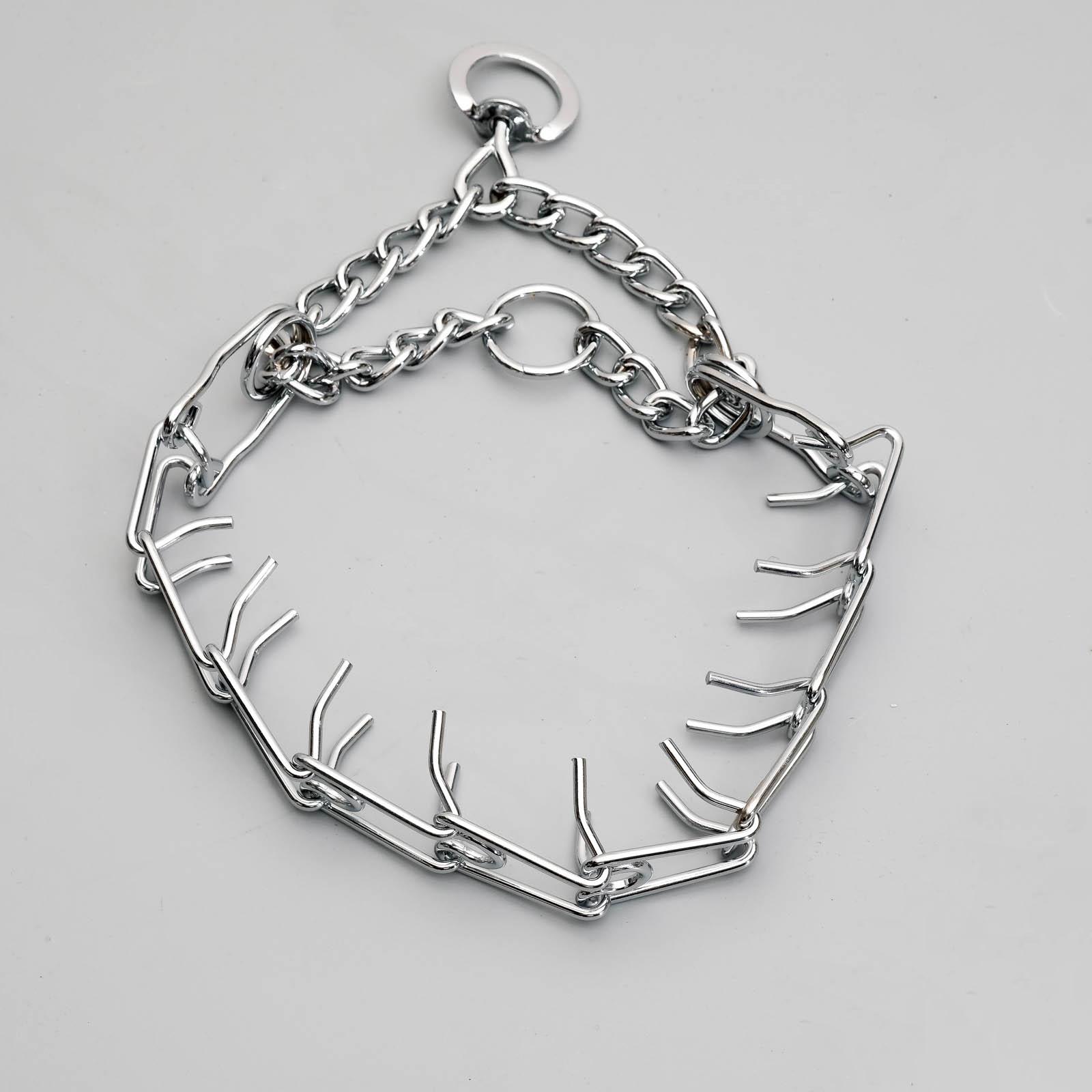 Стальной строгий ошейник для собак предназначен для воспитания и подчинения собаки, а также сдерживания рвущихся собак средних и крупных пород.
