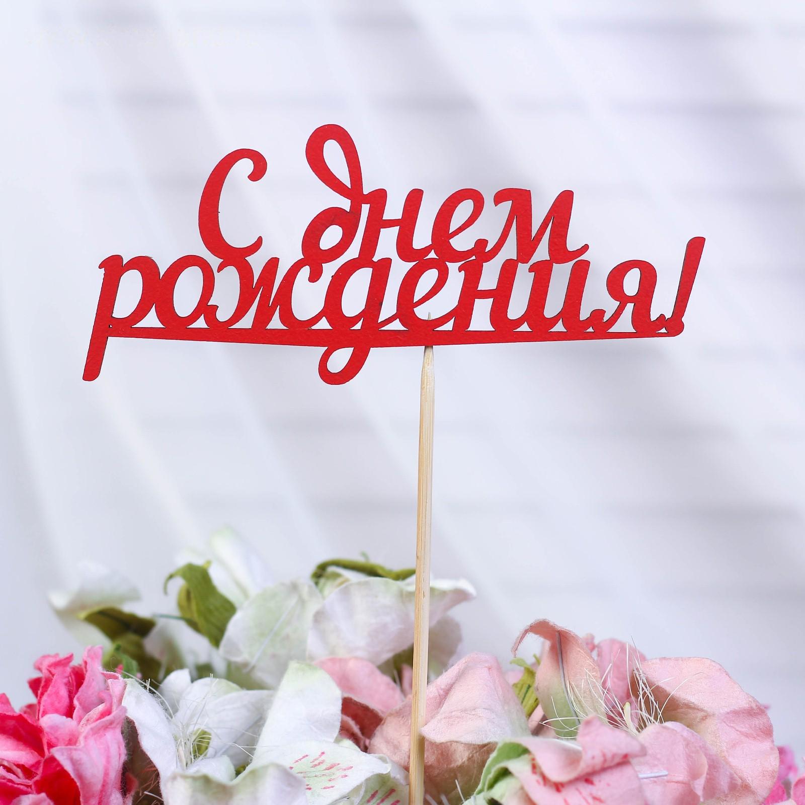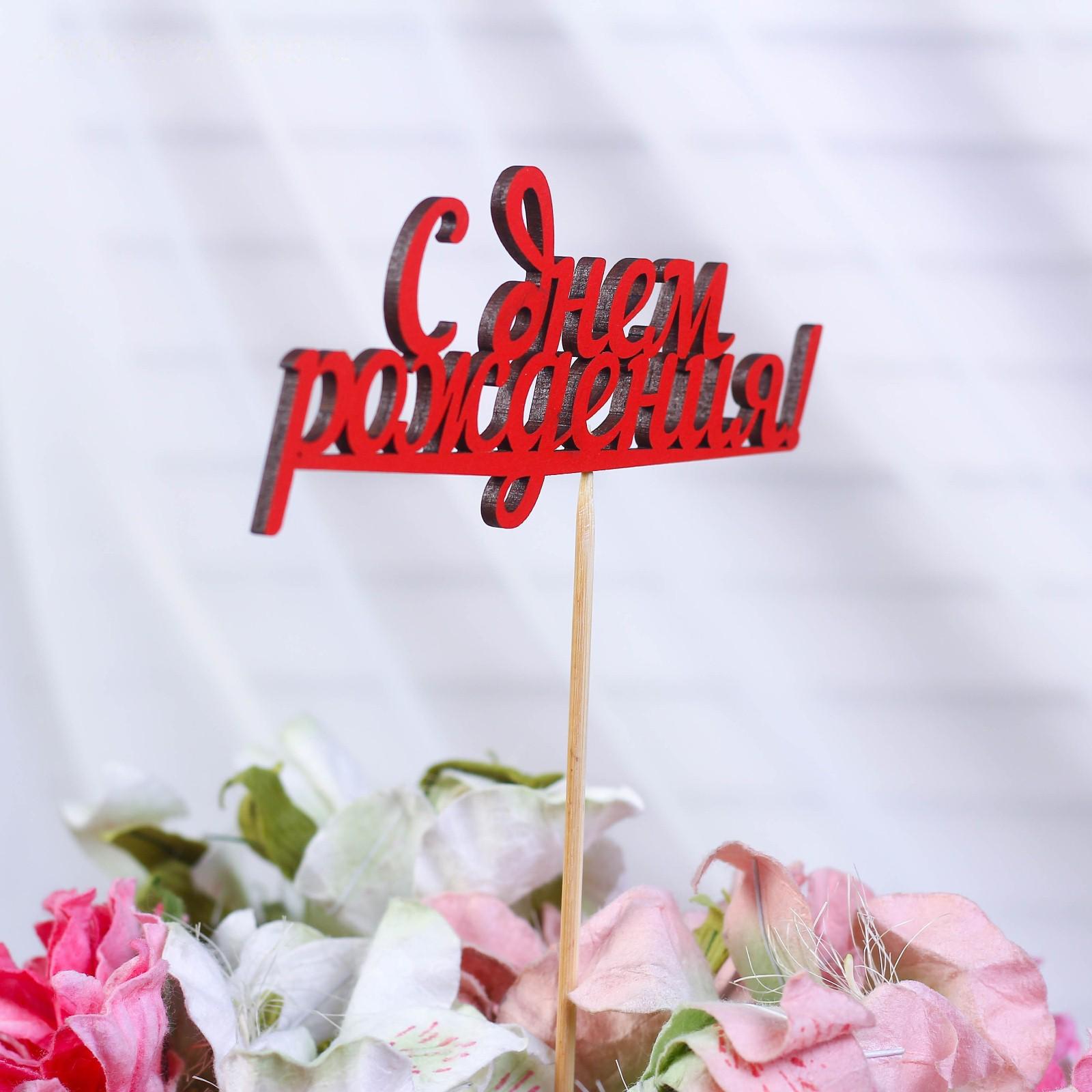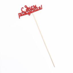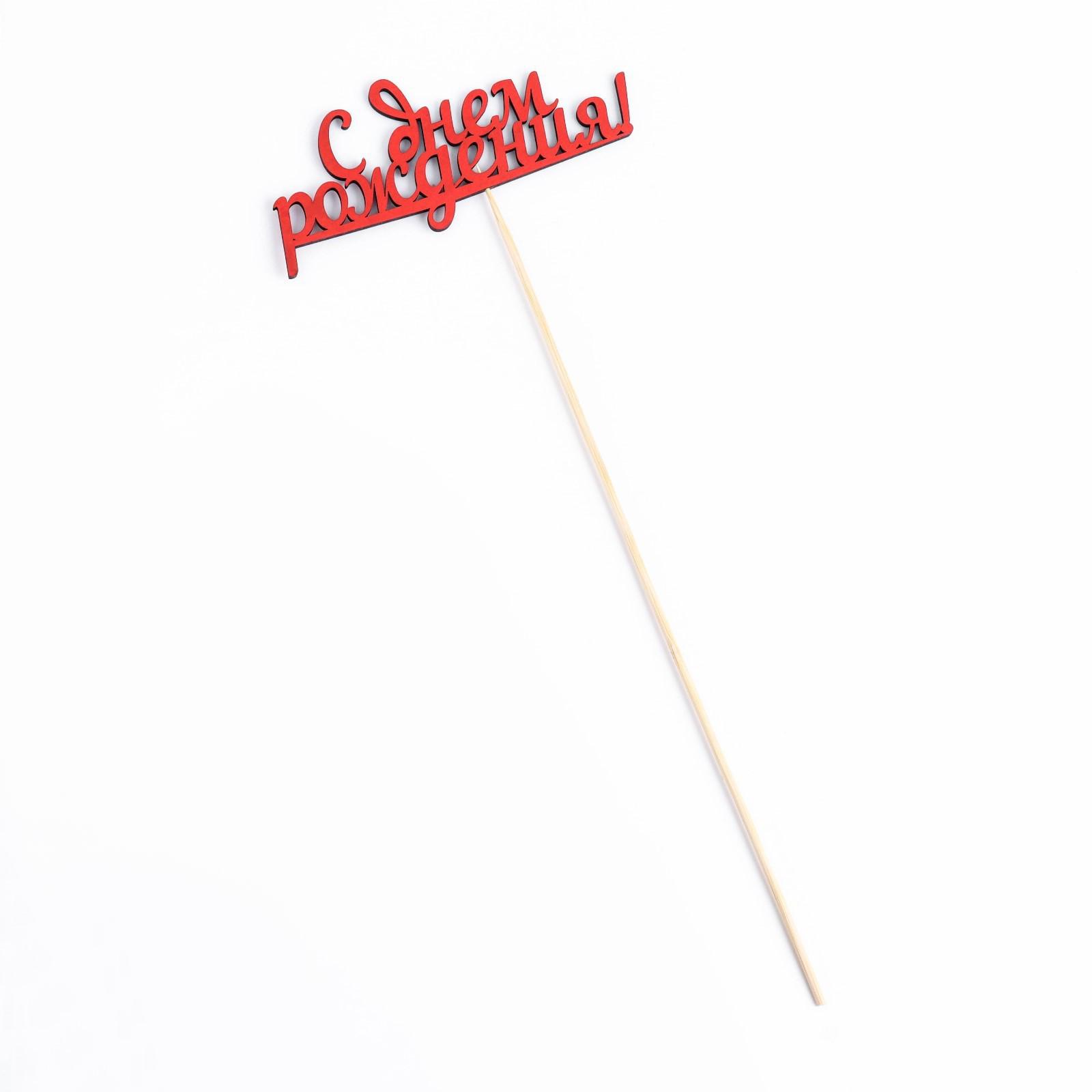 Топпер "С Днем Рождения" красный 13х5,5 см