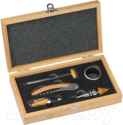 • В наборе кейс, штопор, пробка для бутылки, термометр для вина, аэратор барный, кольцо для вина