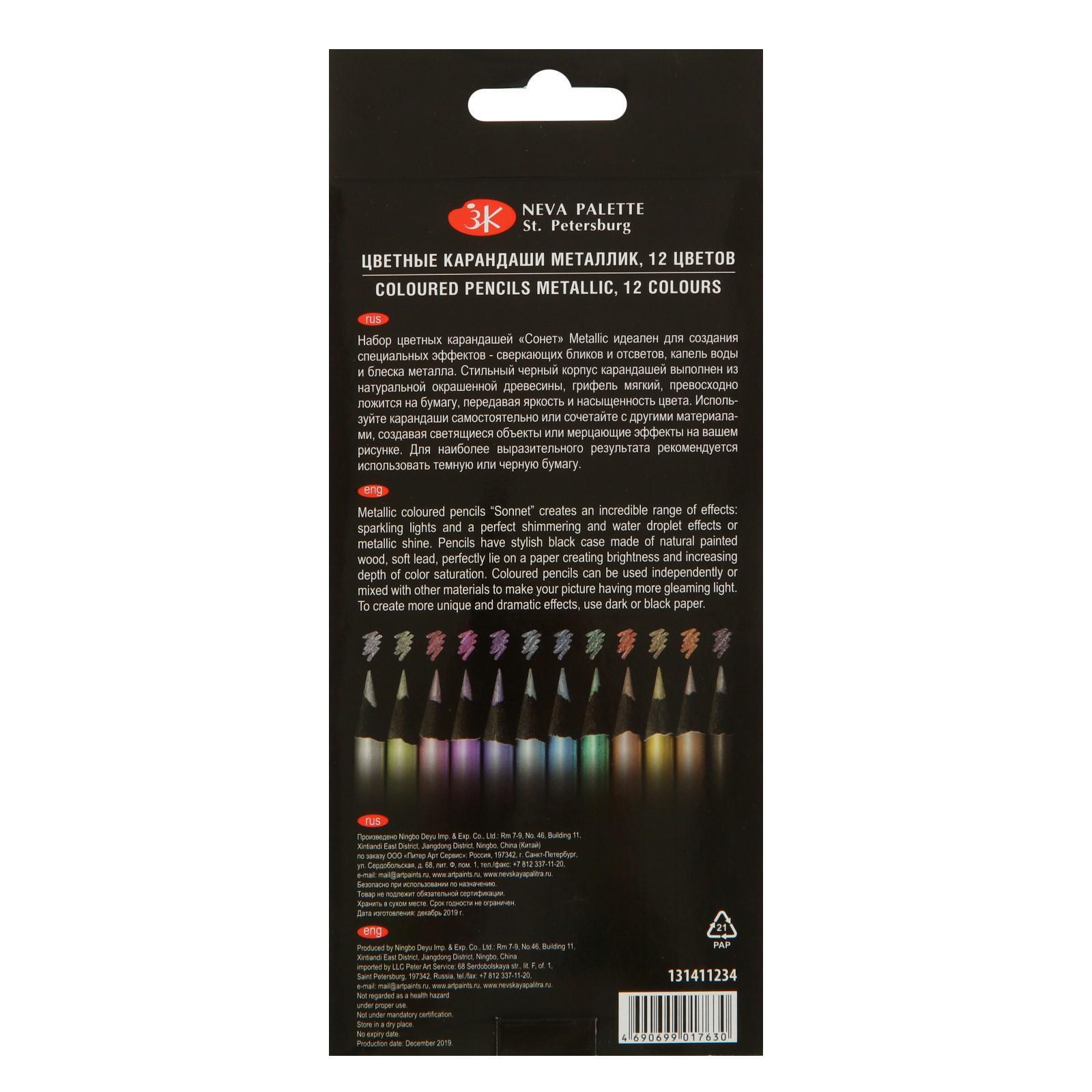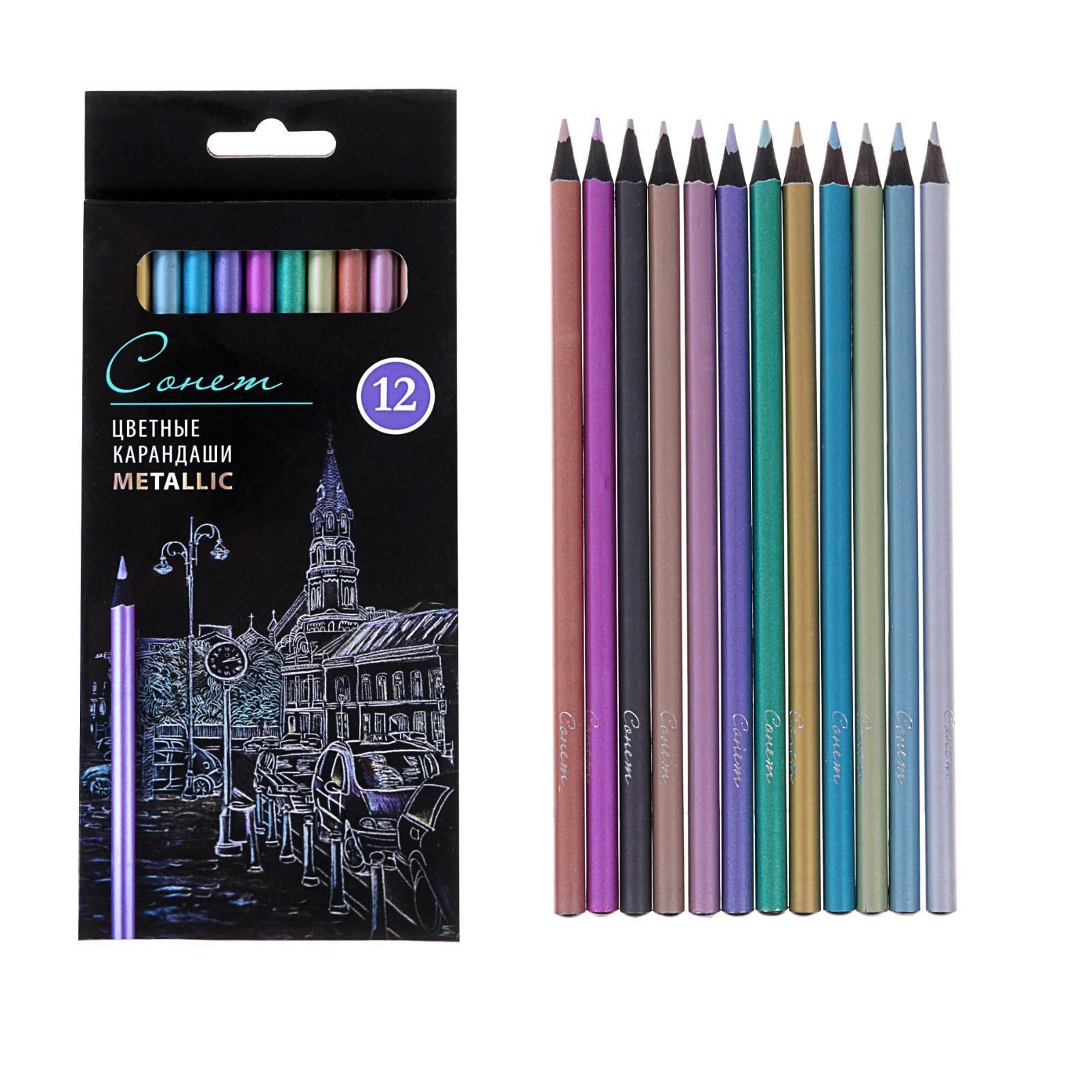 Карандаши художественные цветные "Сонет", Metallic, 12 цветов