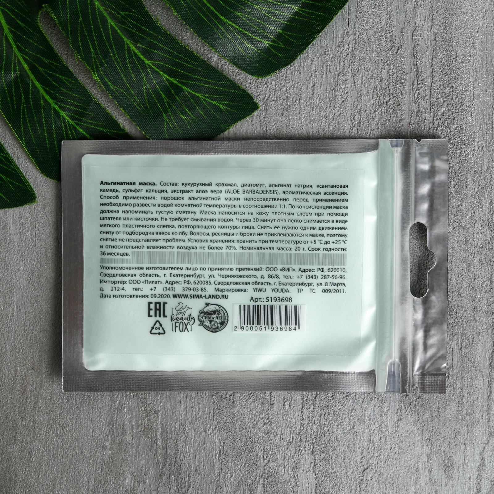 Маска альгинатная в пакете ANTIQUE , с экстрактом алое, 20г