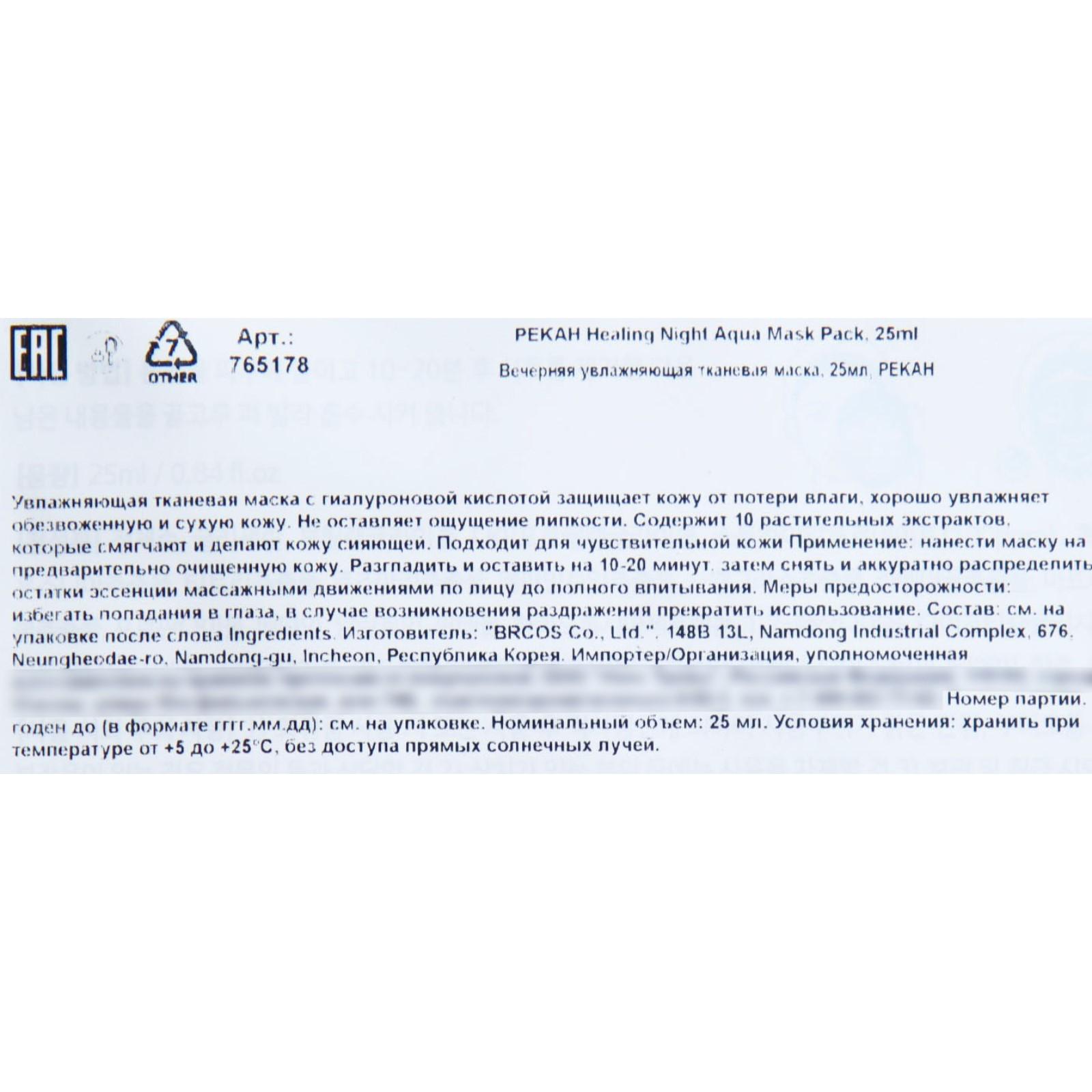 Тканевая маска для лица Pekah, увлажняющая, 25 мл