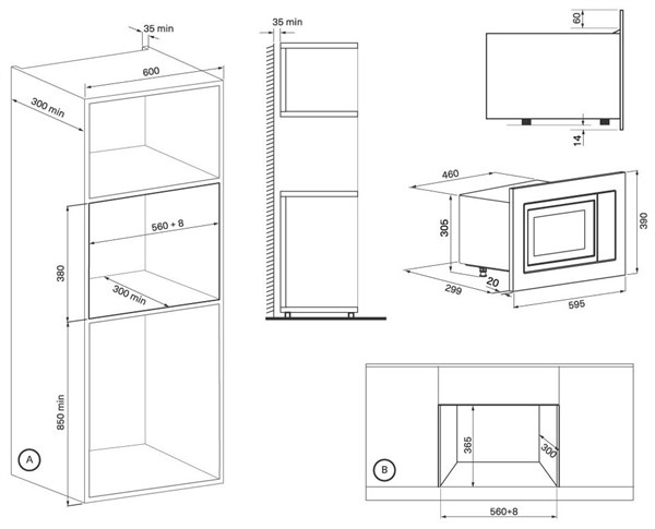Внутренний объем 20 л / Расположение встраиваемая / Мощность микроволн 700 Вт