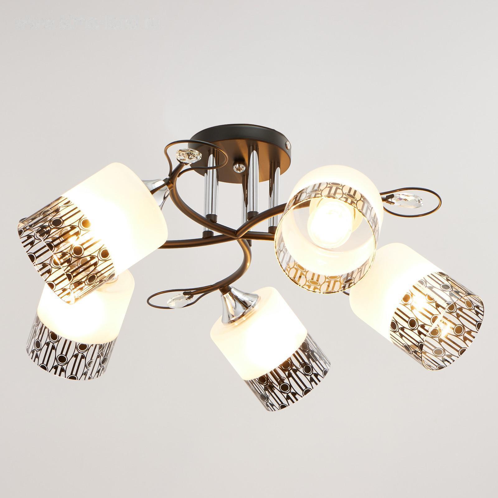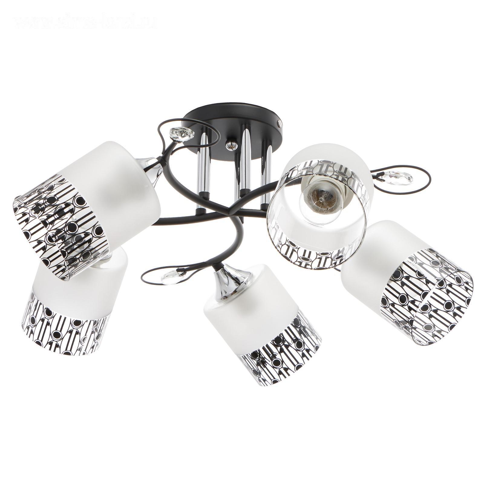 Люстра 890551 5х60Вт Е27 черный/матовый белый с черным рисунком